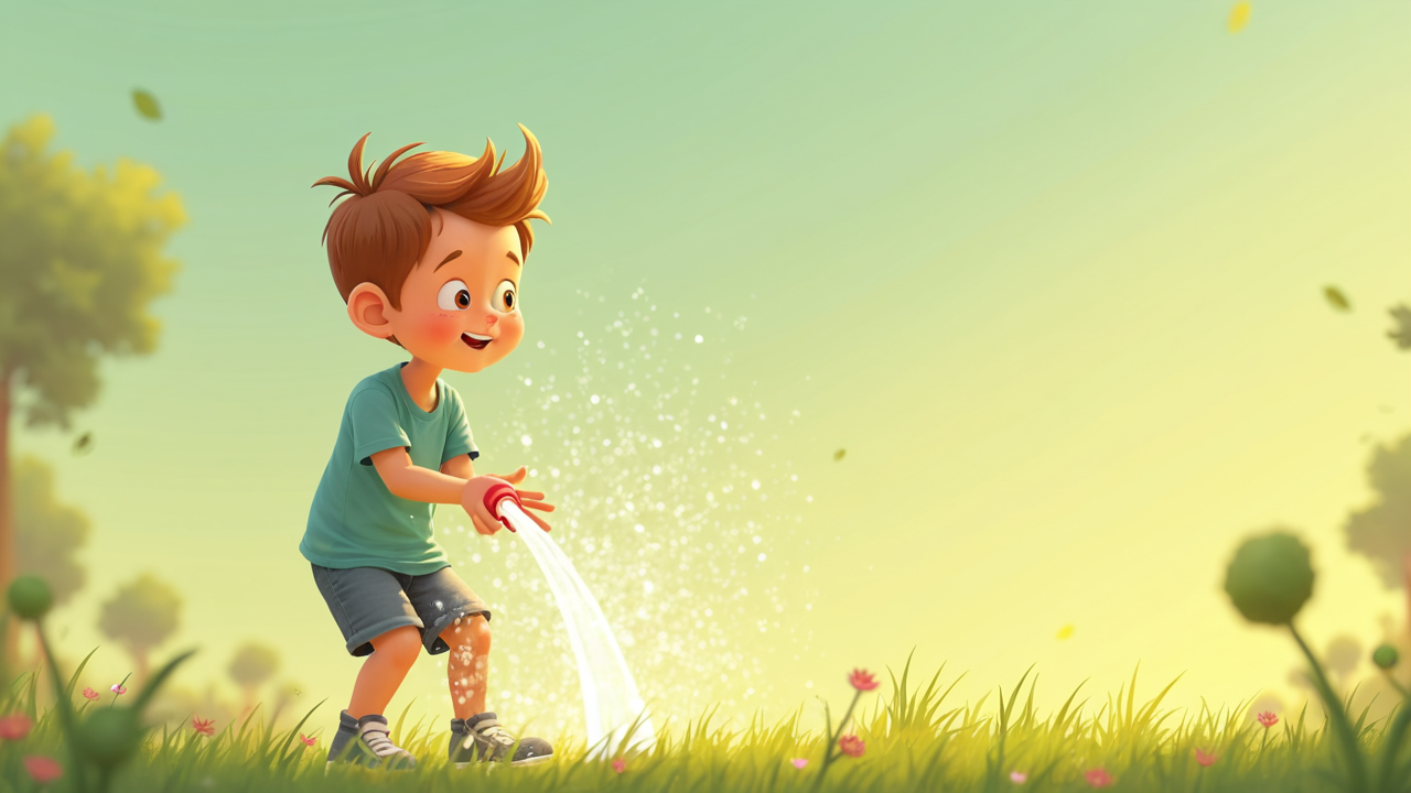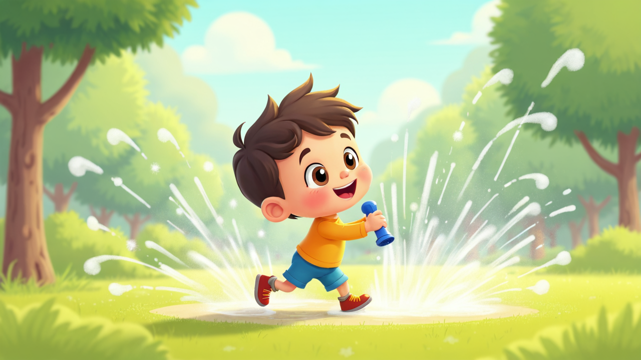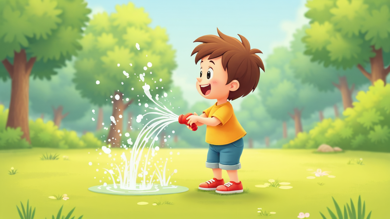 2d cartoon kid Playing Sprinkler