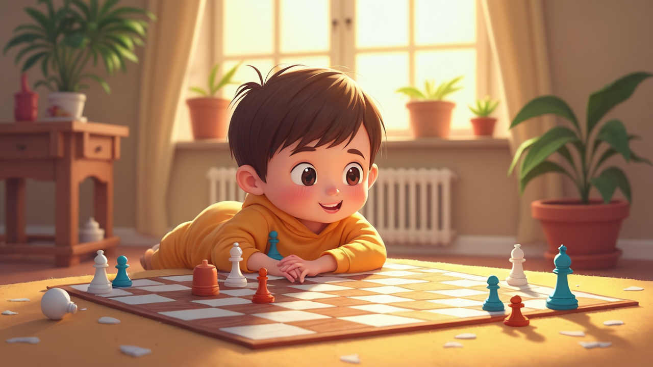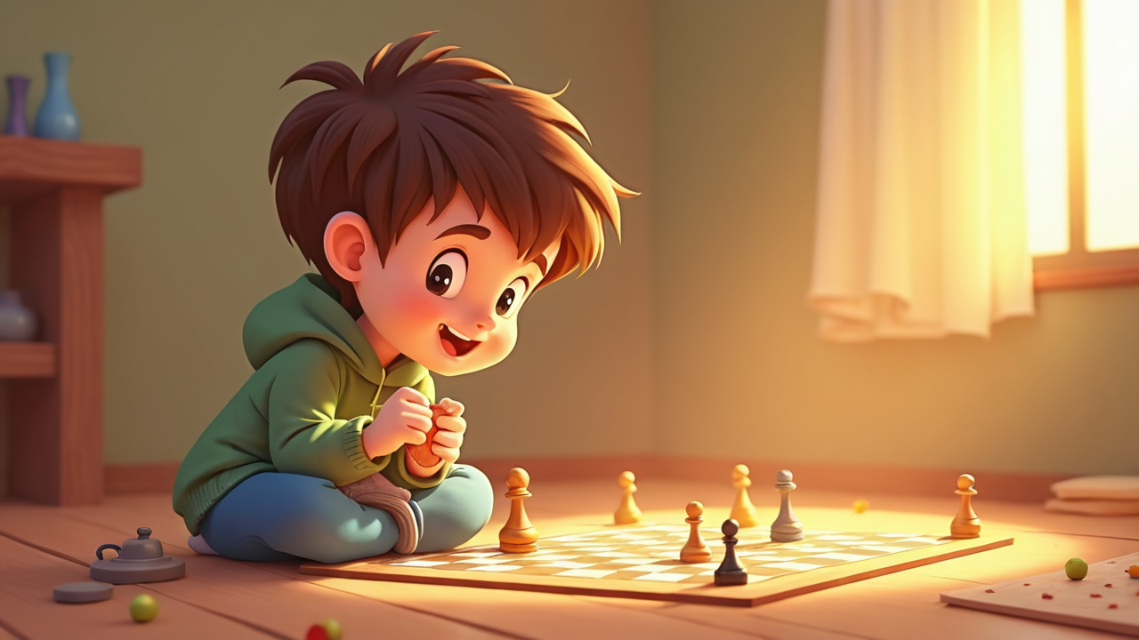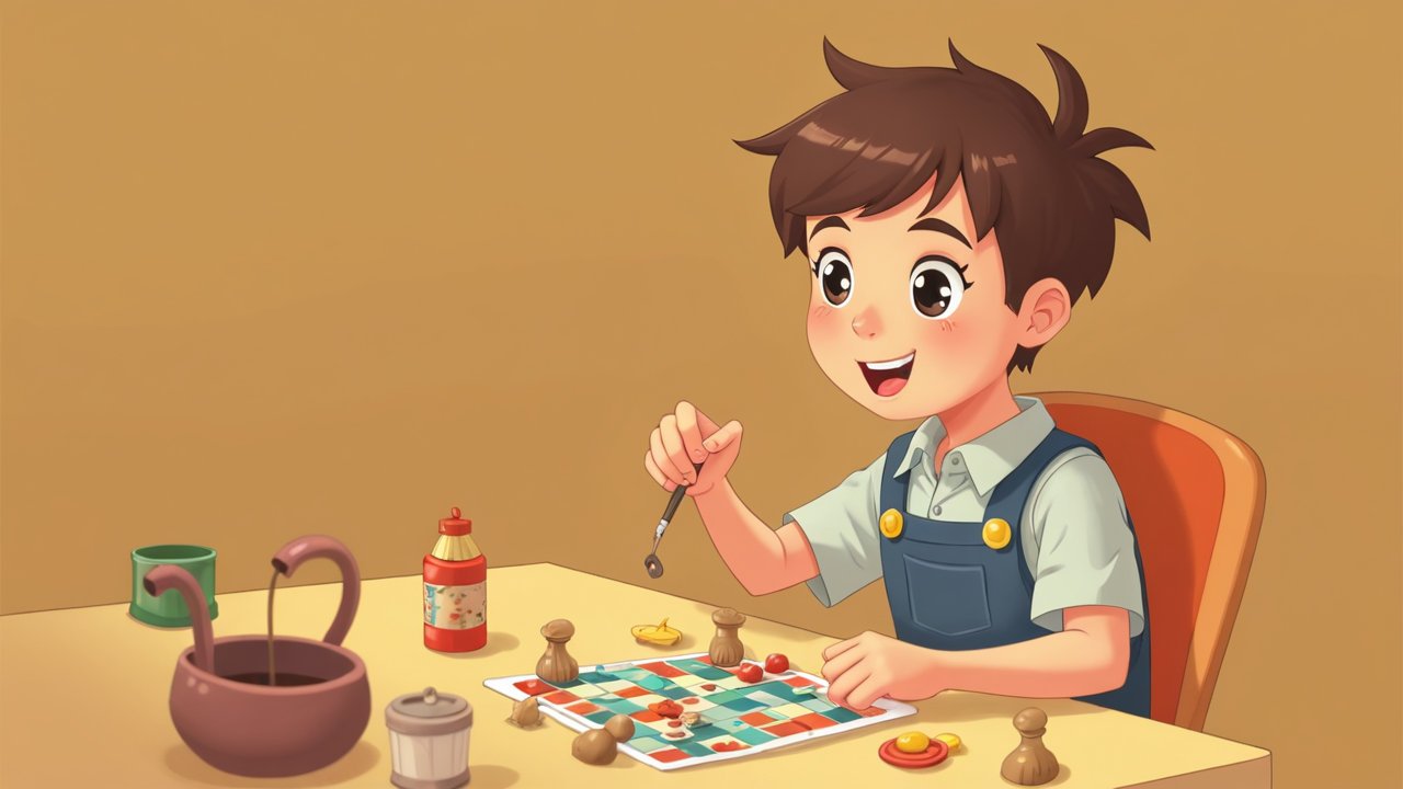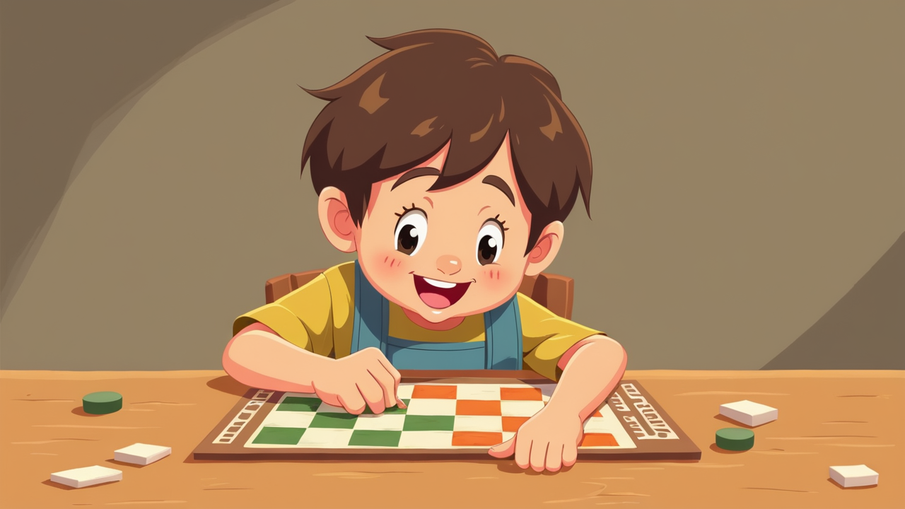 2d cartoon kid Playing Board Game