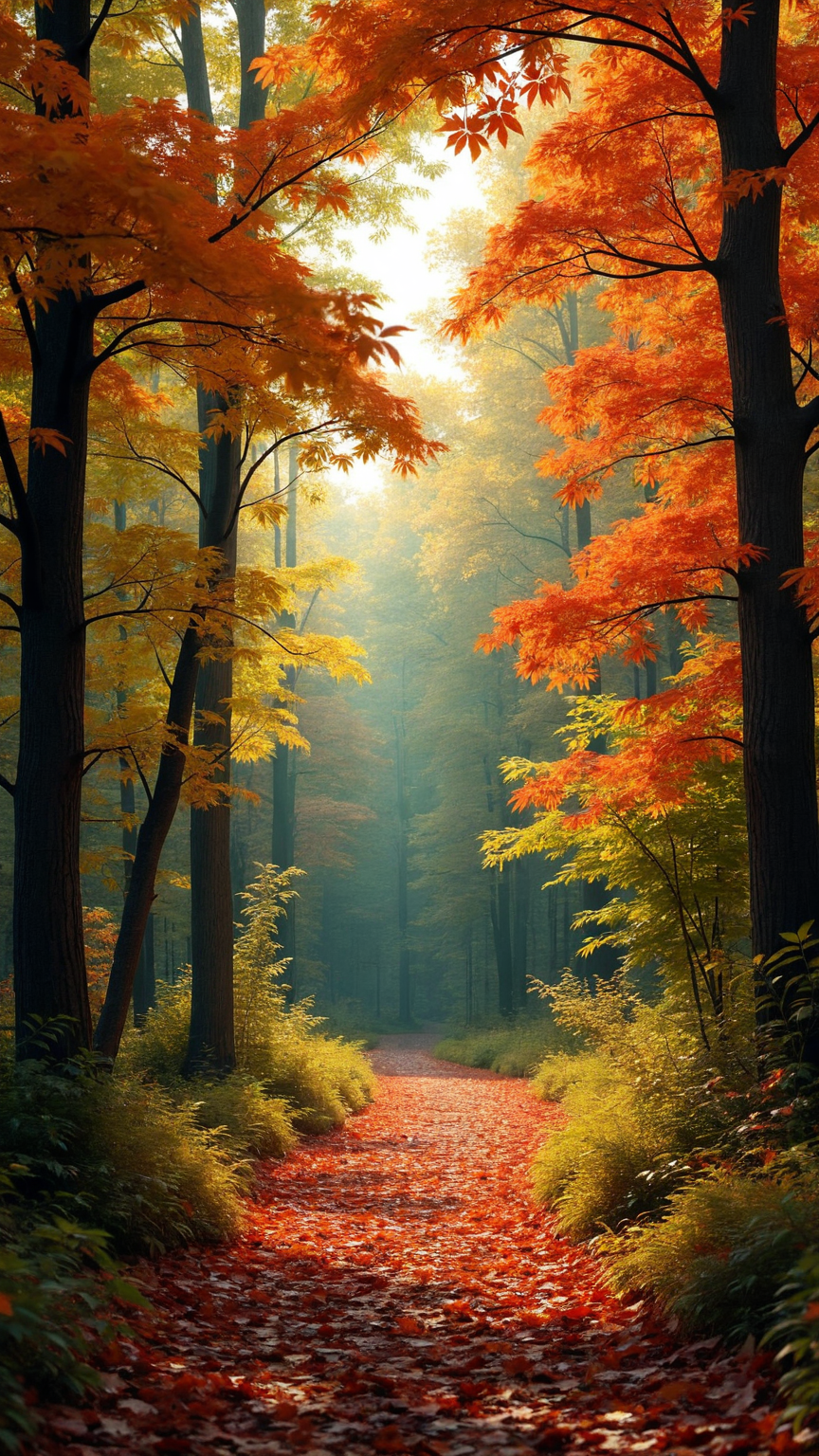 mobile wallpaper mobilewallpaper sunlight Fall Colors Vibrant Foliage Autumn Forest