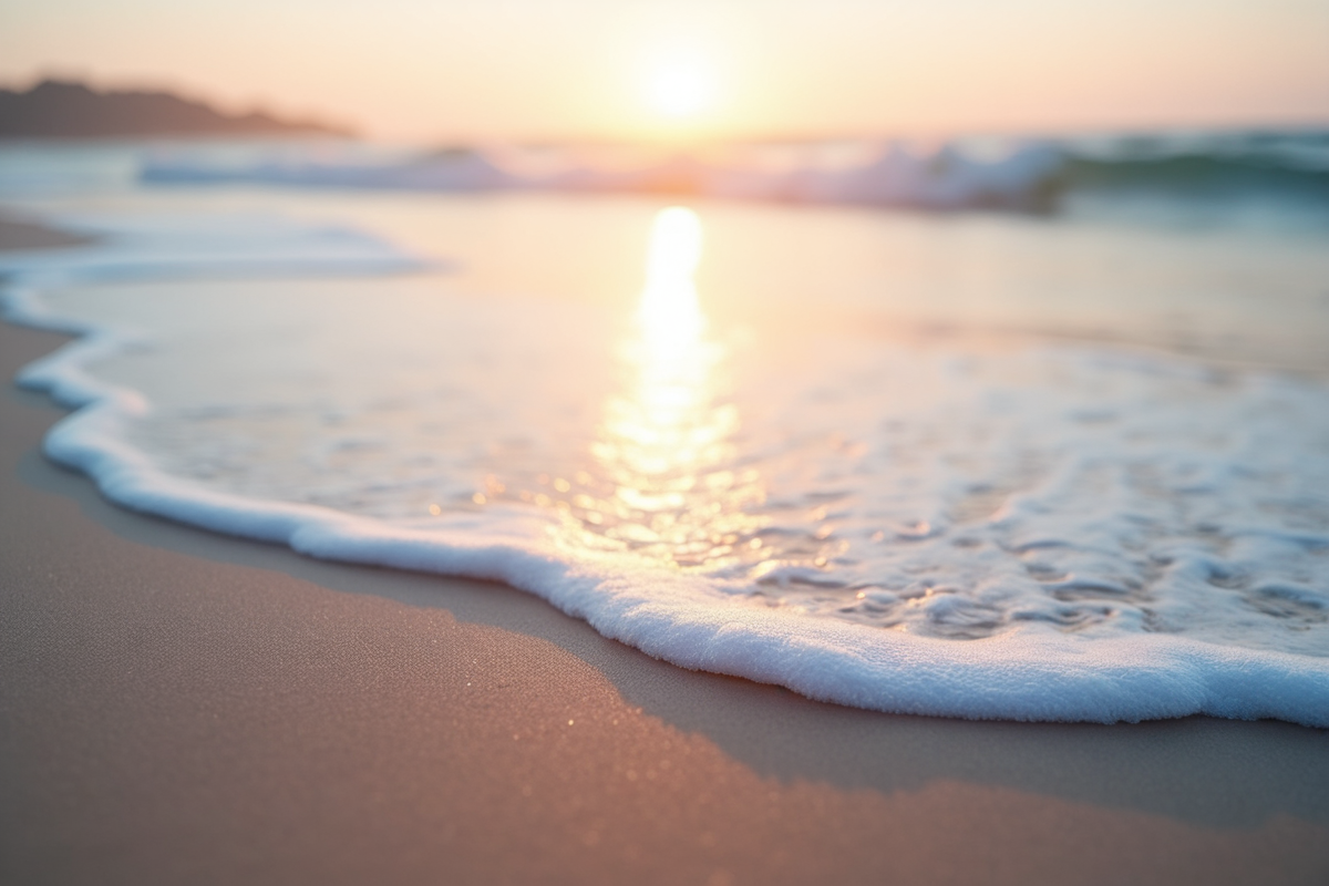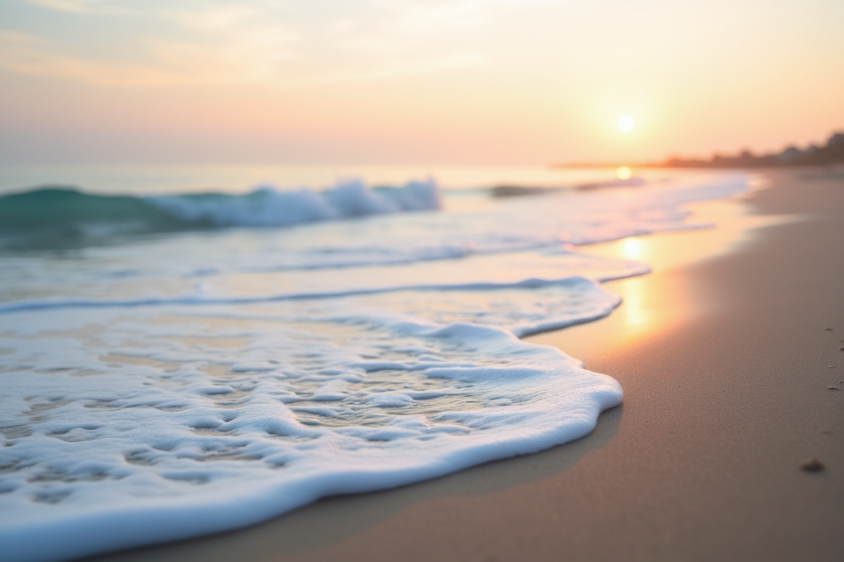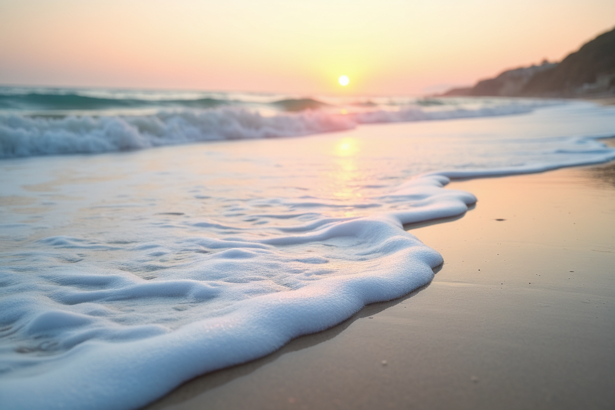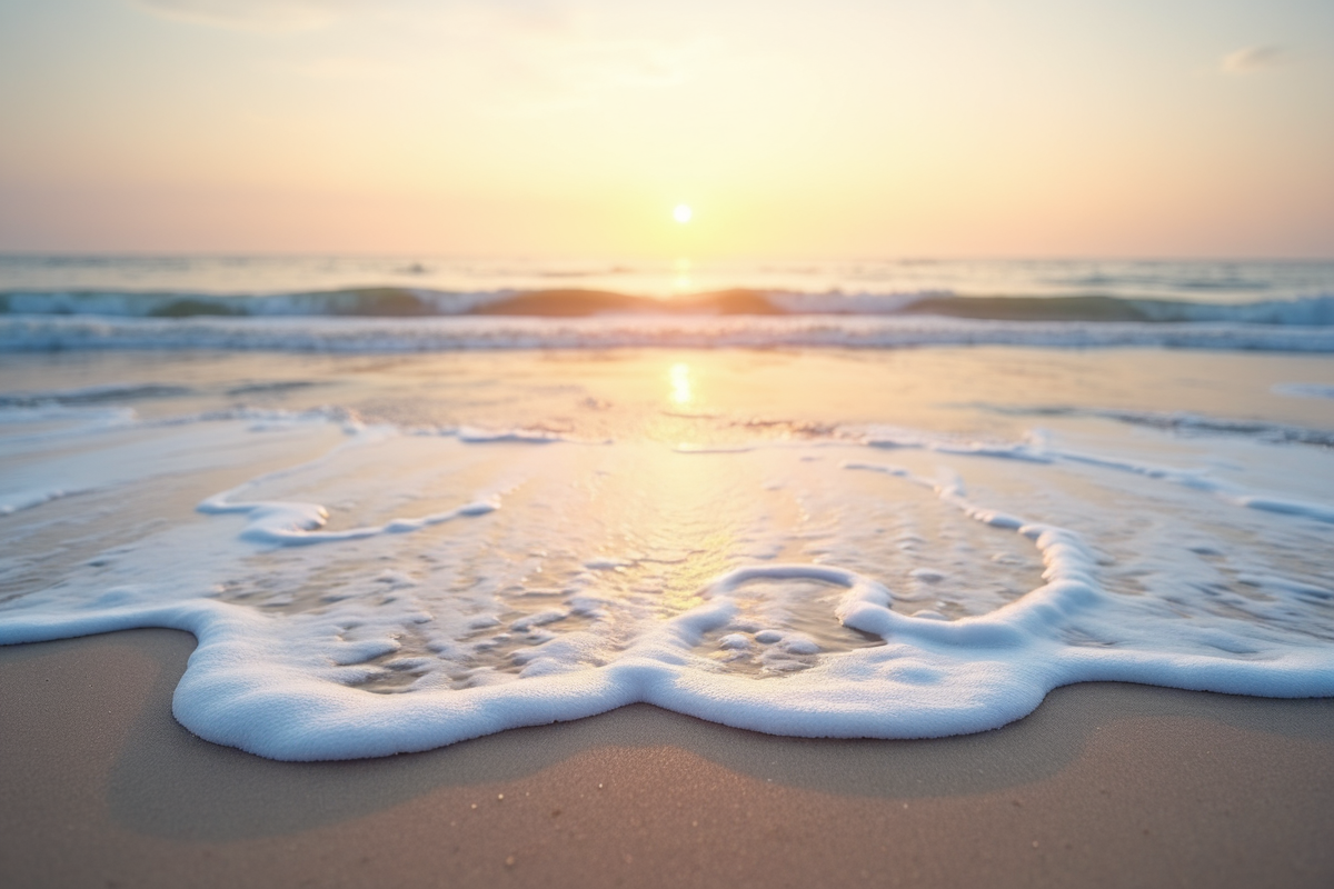 gentle waves beach ocean tranquil setting sea foam morning light sunrise beach