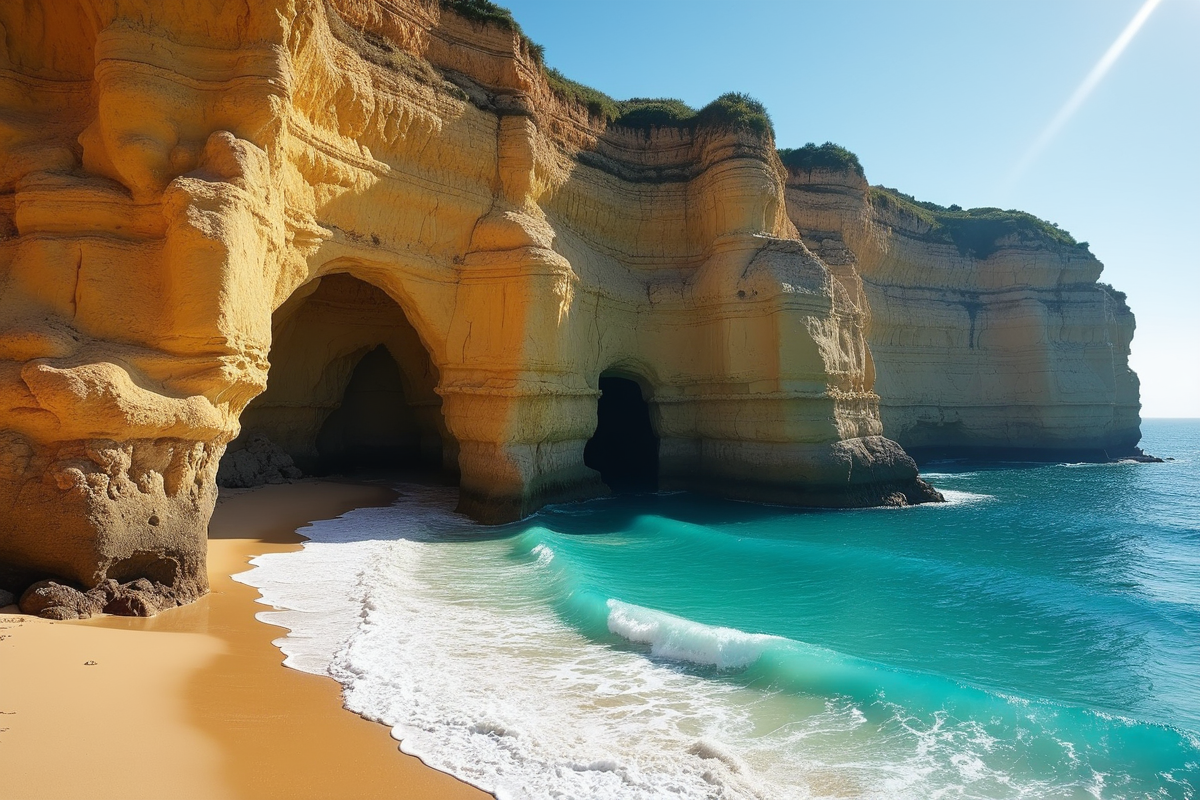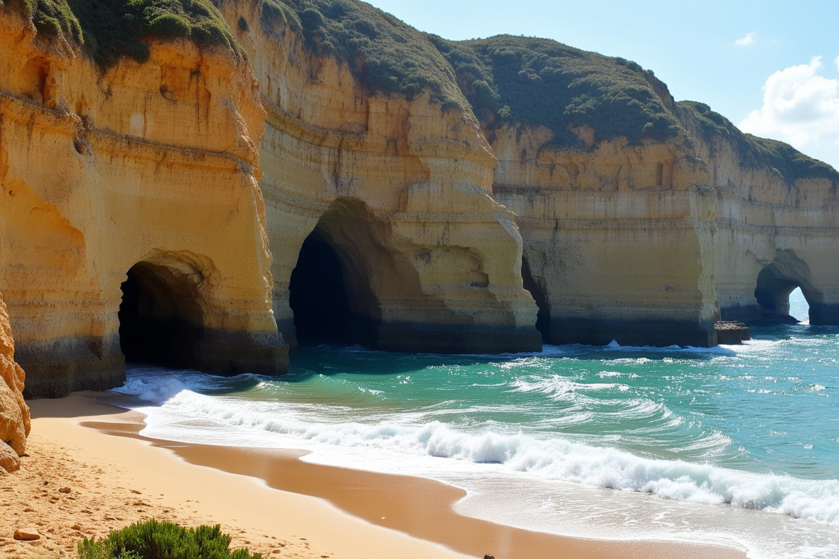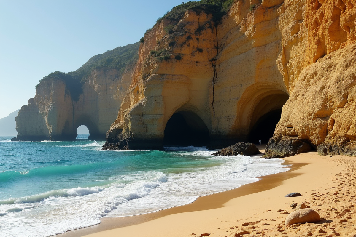 beach ocean rock formations sandy shore dramatic scenery cliff beach caves