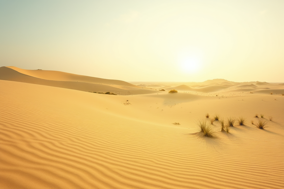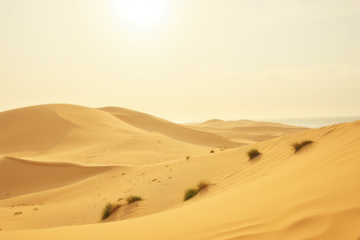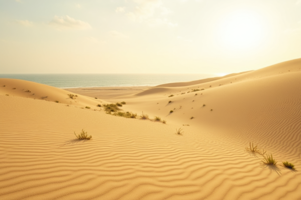tranquil beach golden sand rolling dunes coastal landscape deserted shoreline