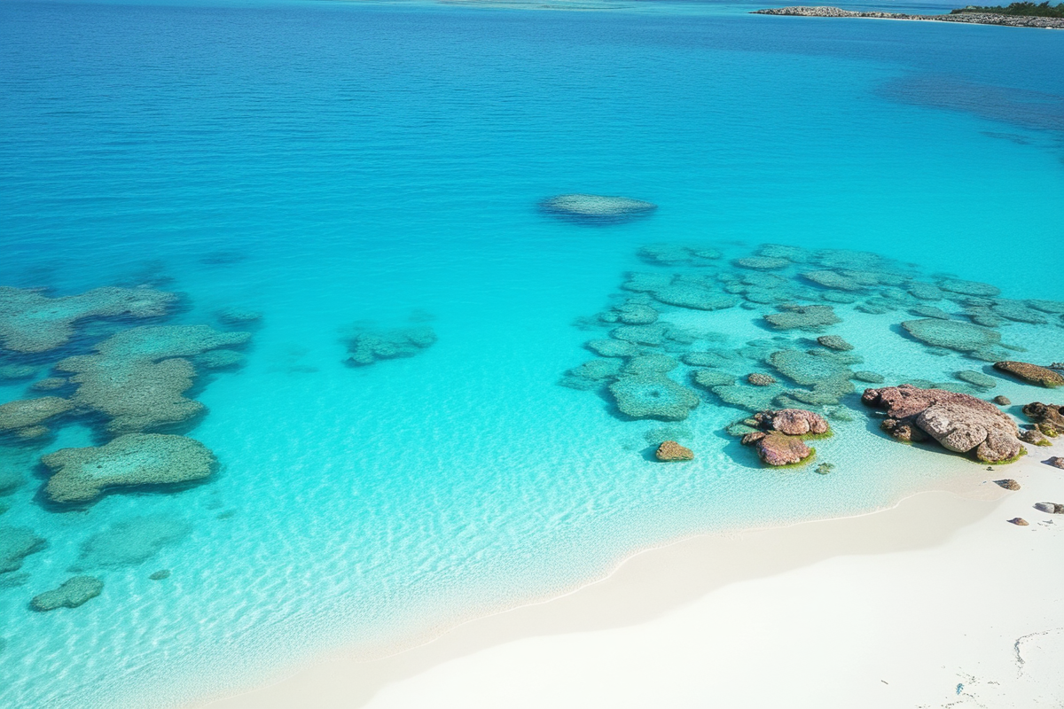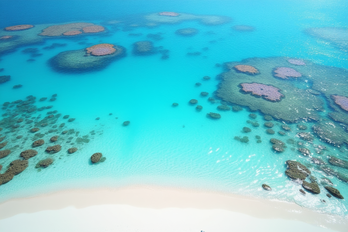 coral beach shimmering water peaceful shore turquoise sea vibrant reefs