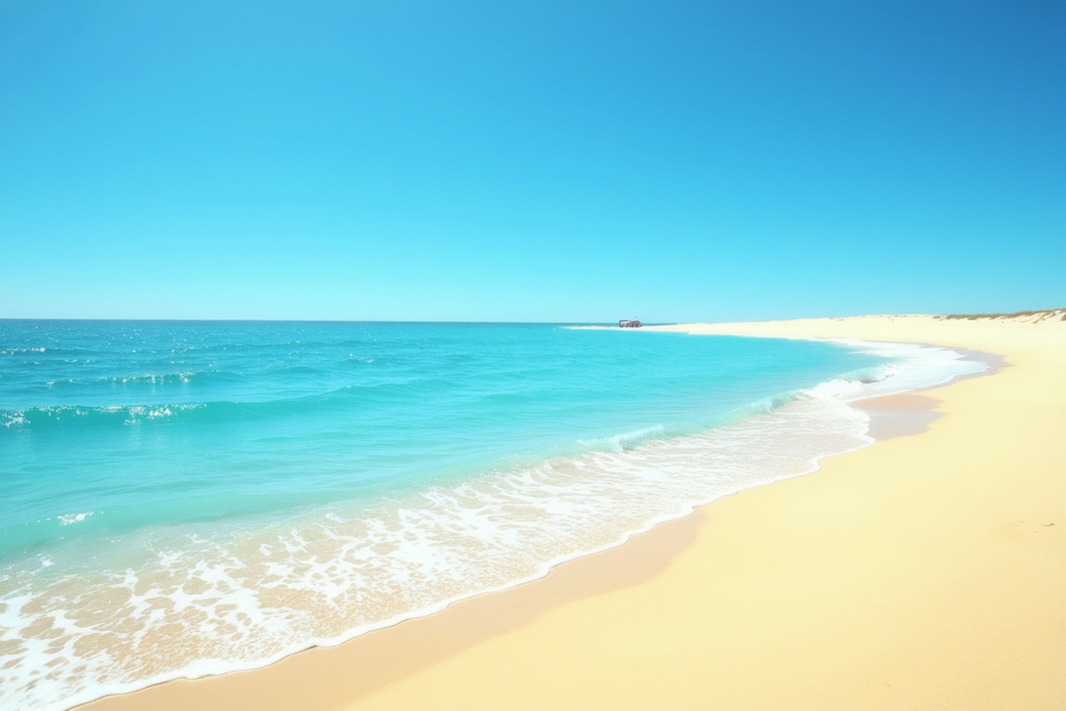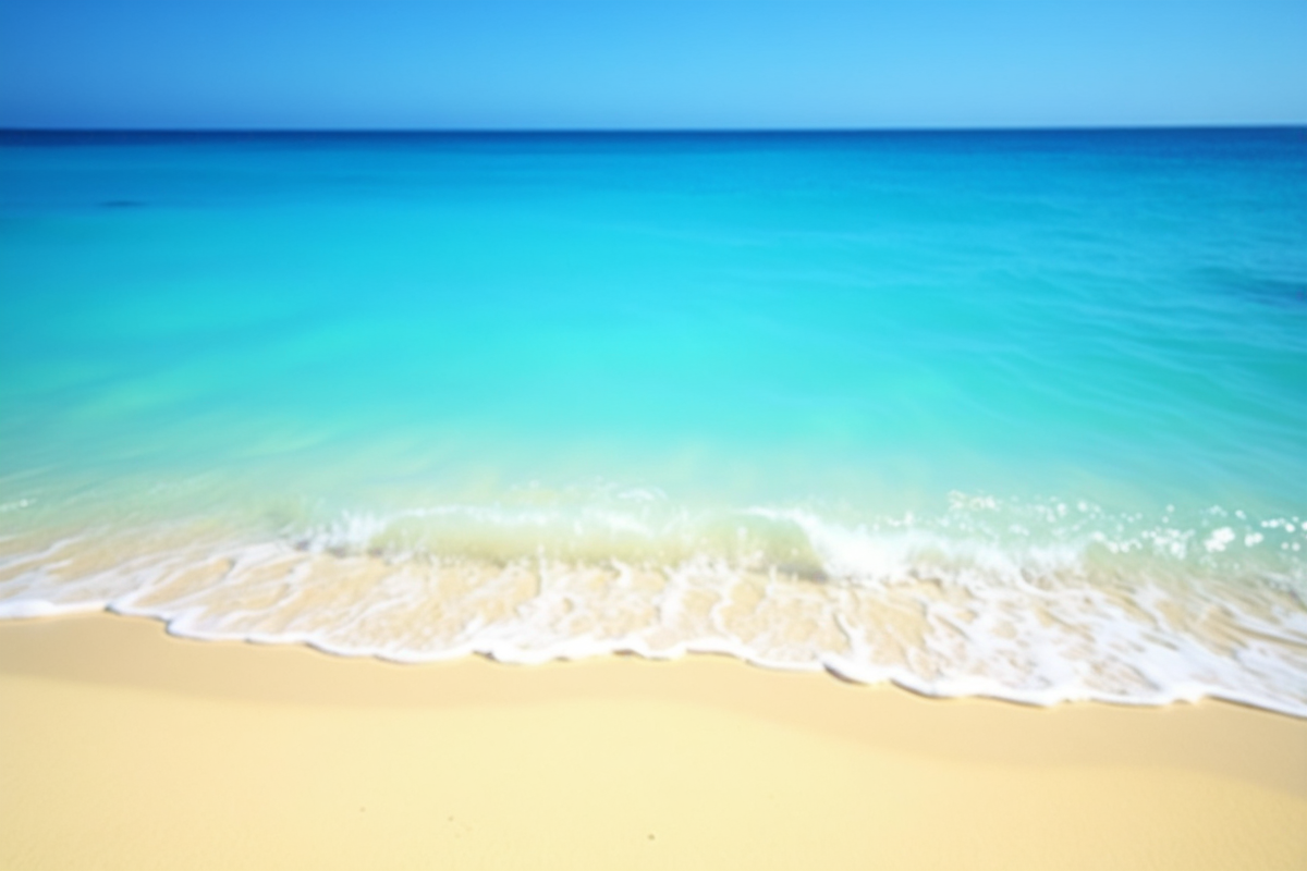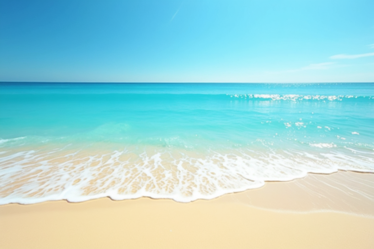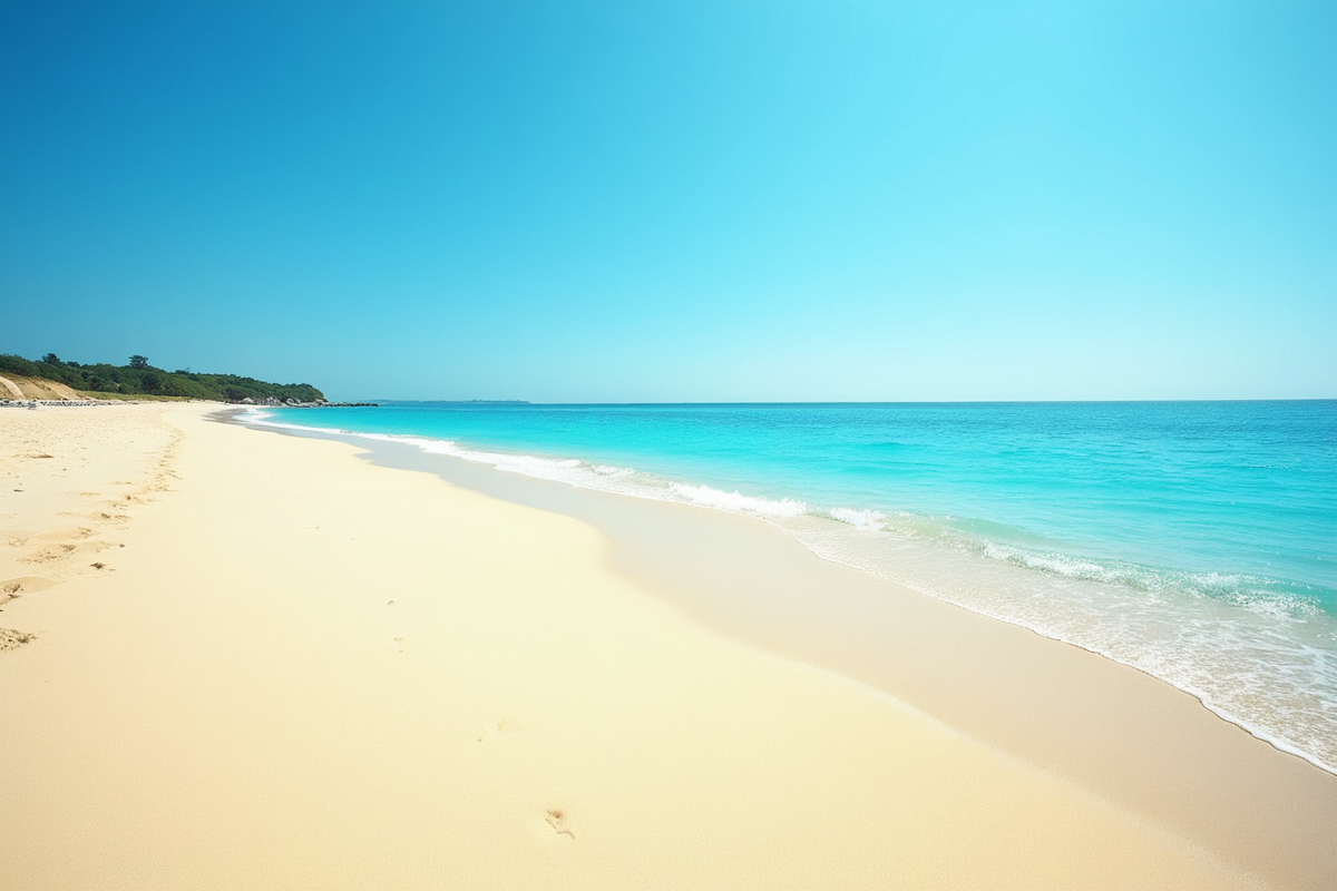 serene beach tranquil setting clear sky golden sand beach bright blue water