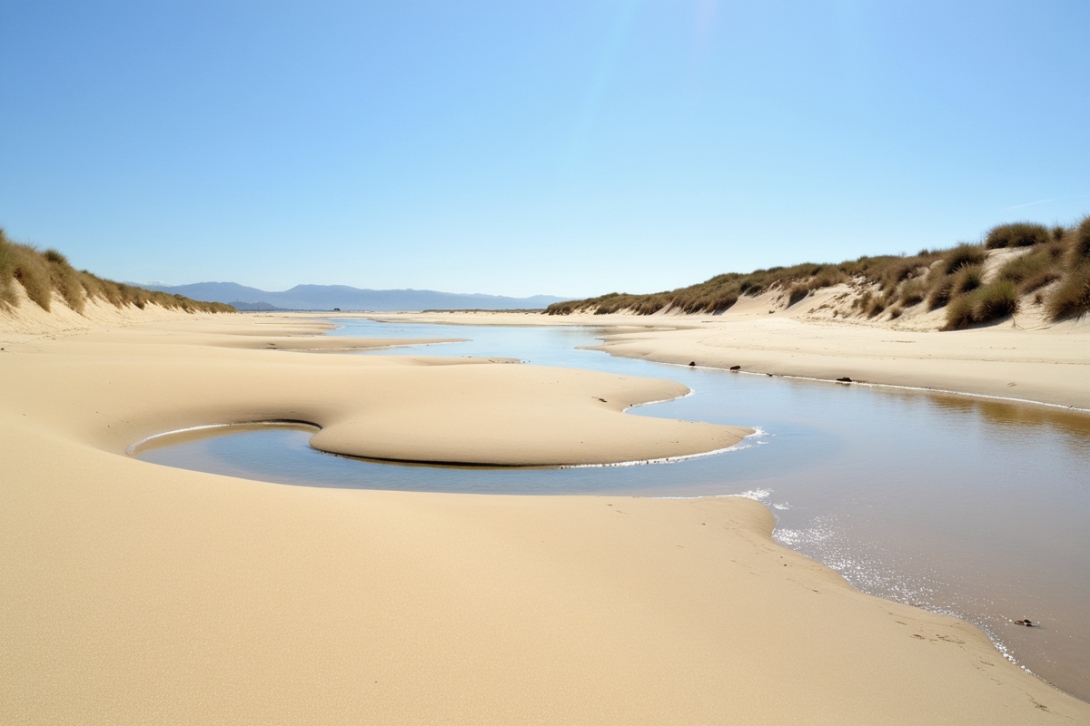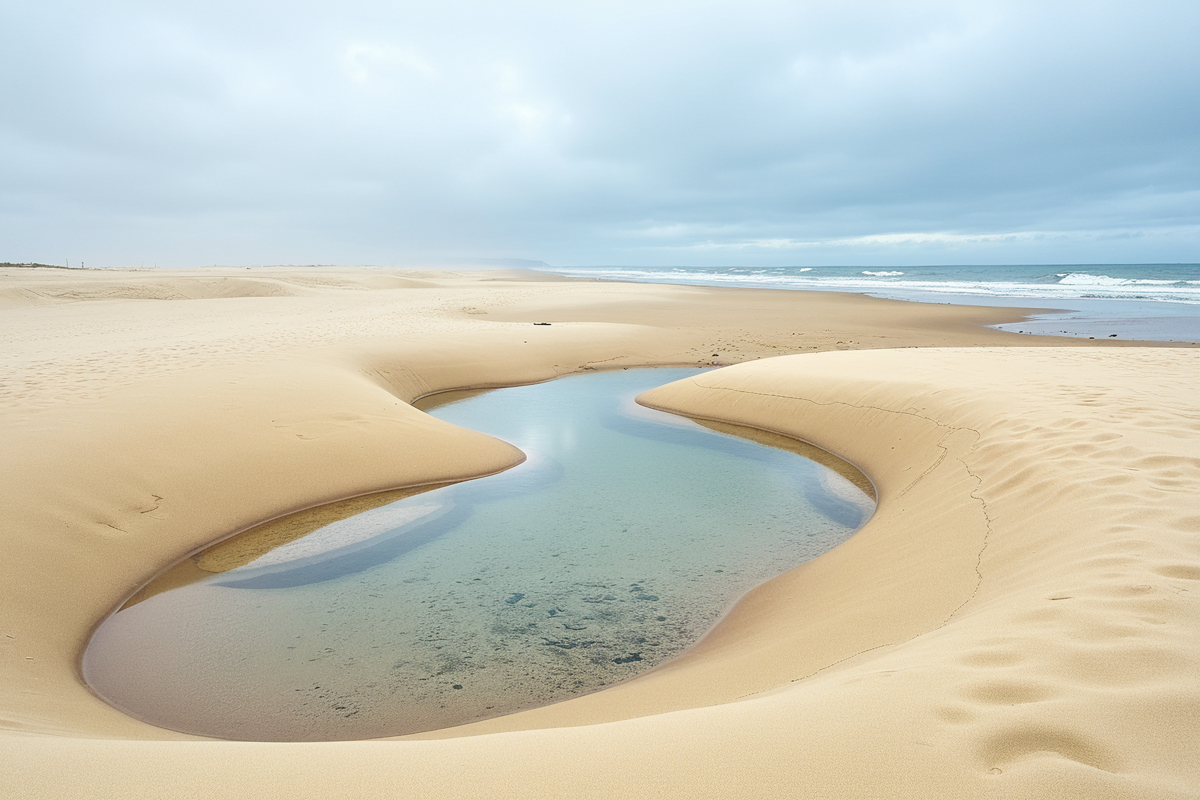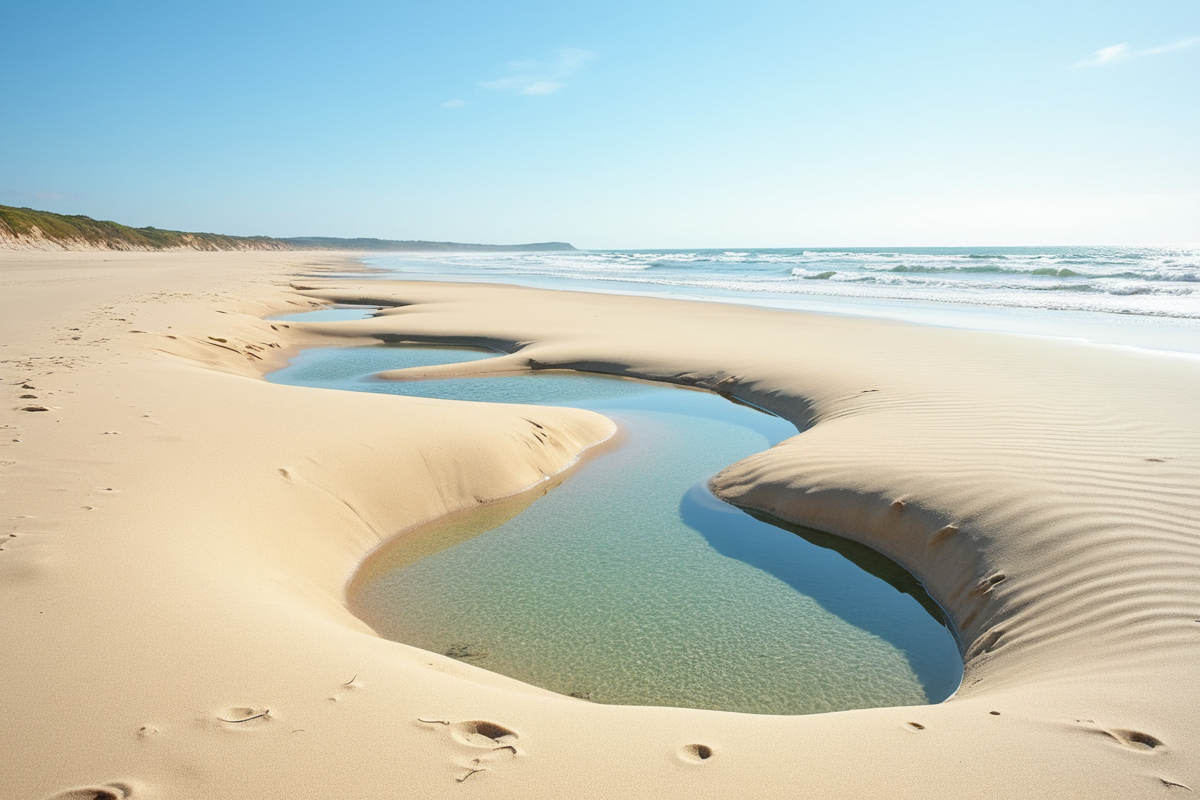 deserted beach windswept sand secluded shore tranquil environment low tide pools
