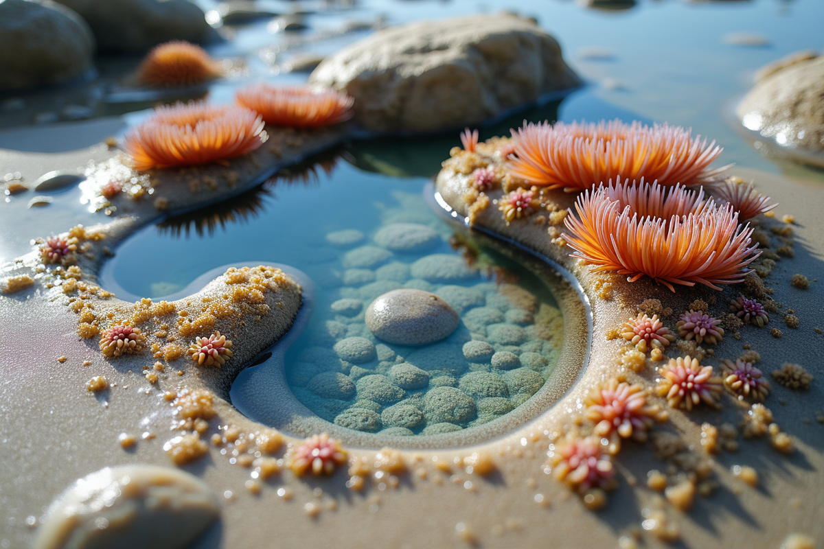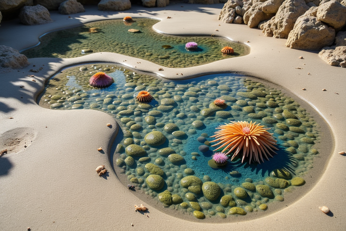 marine life tide pools sea anemones low tide beach rocks