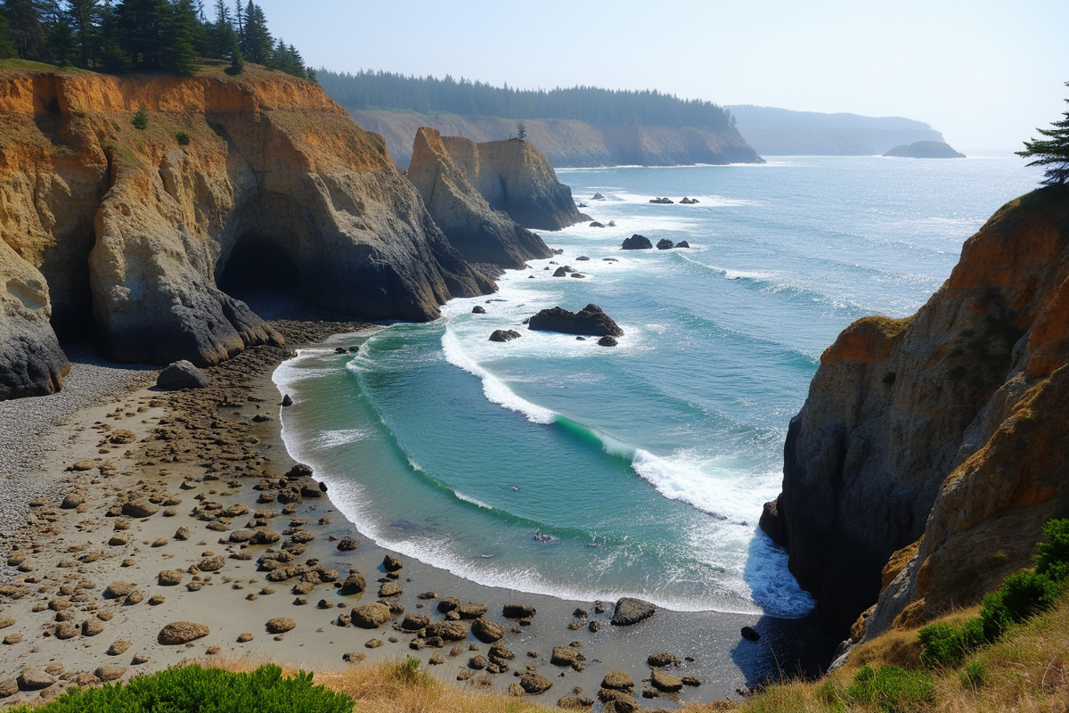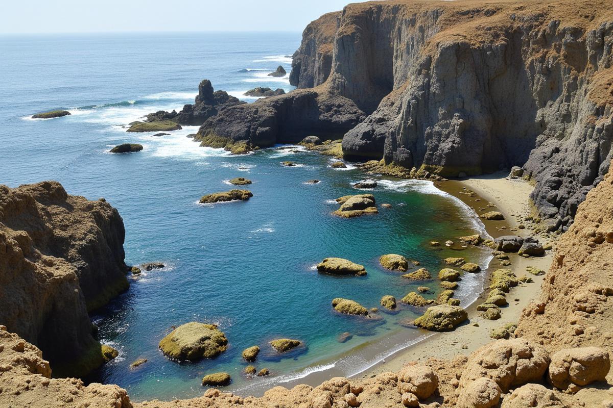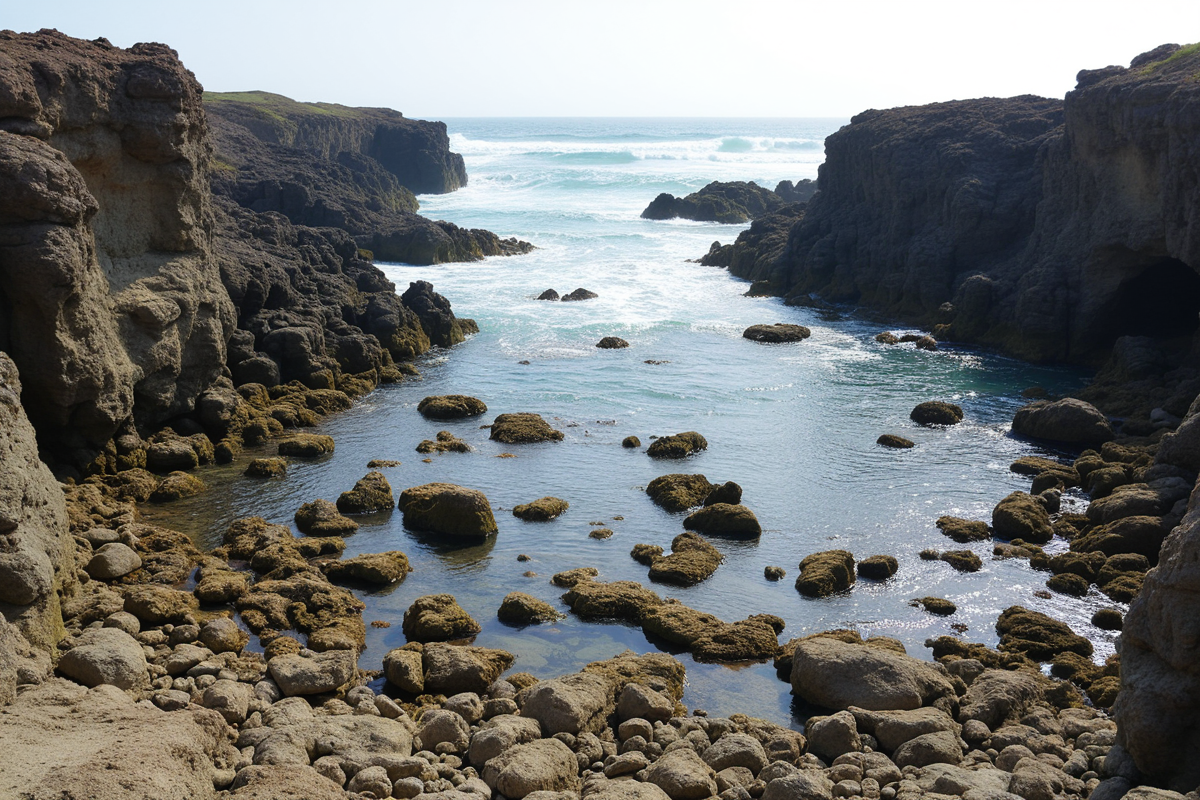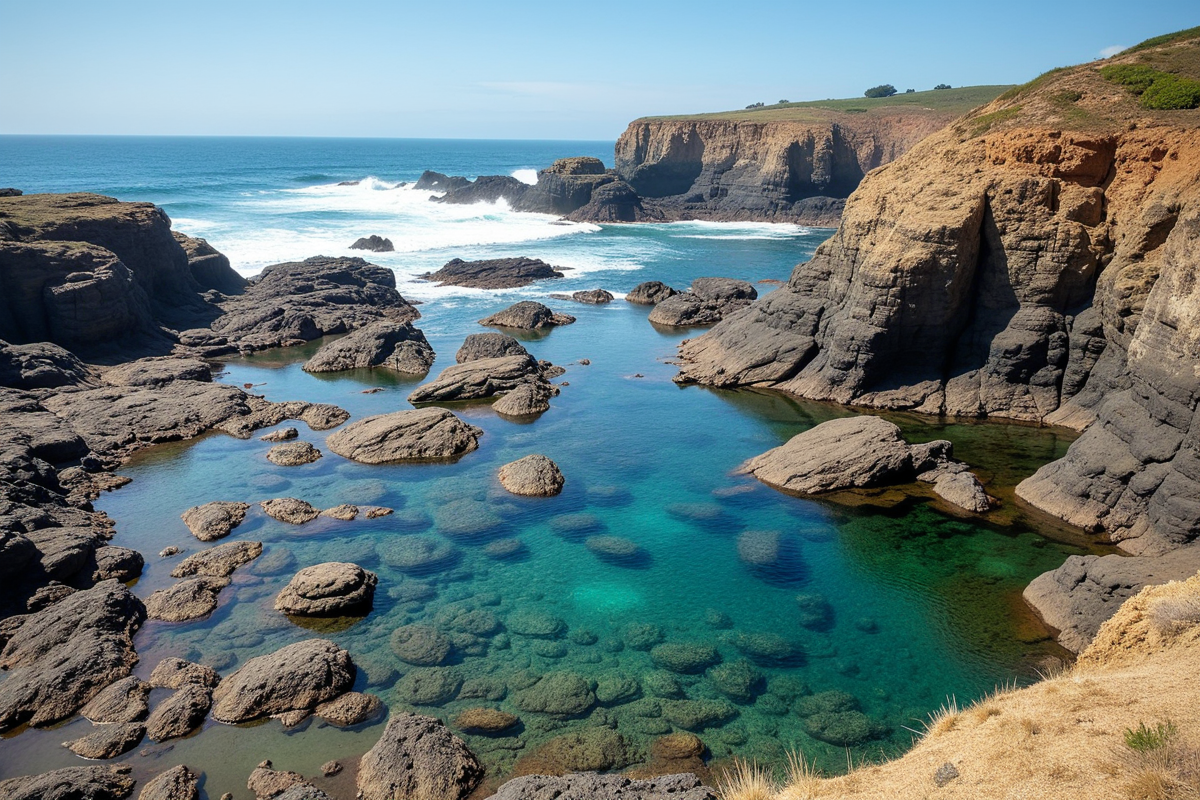 crashing waves tide pools rocky shore rugged coastline marine wildlife