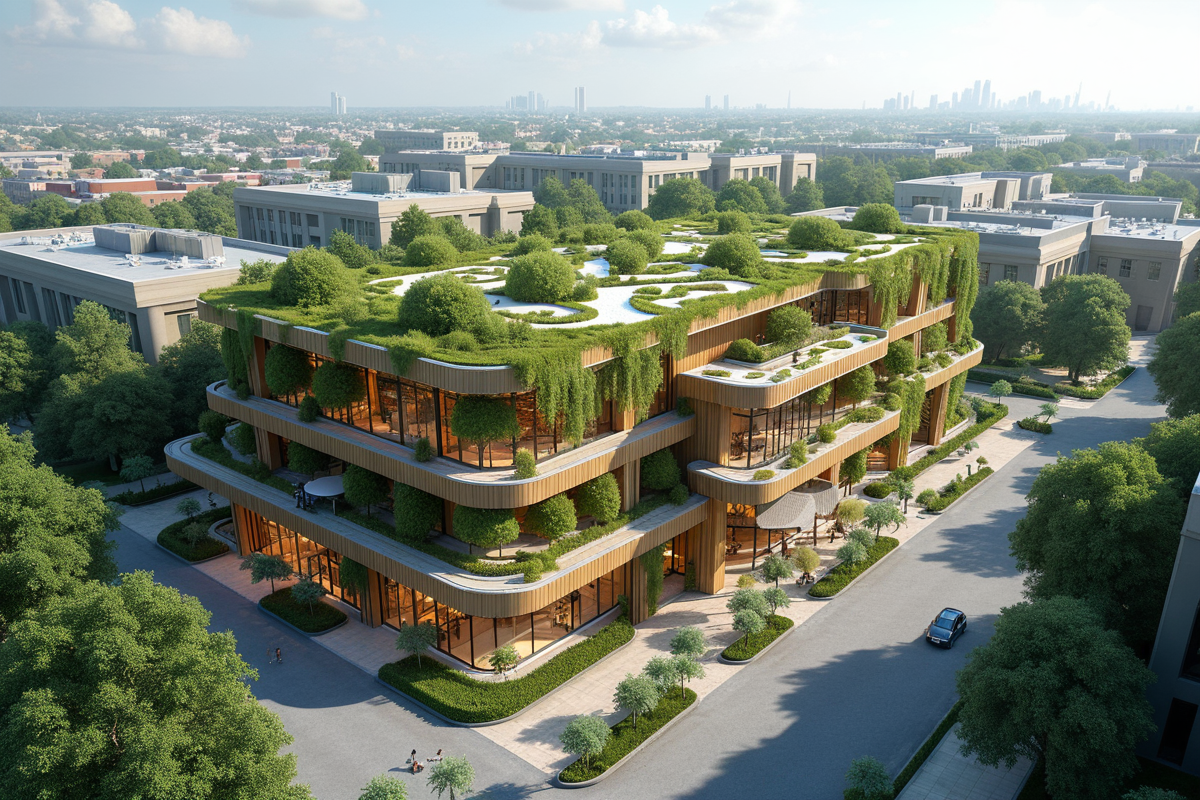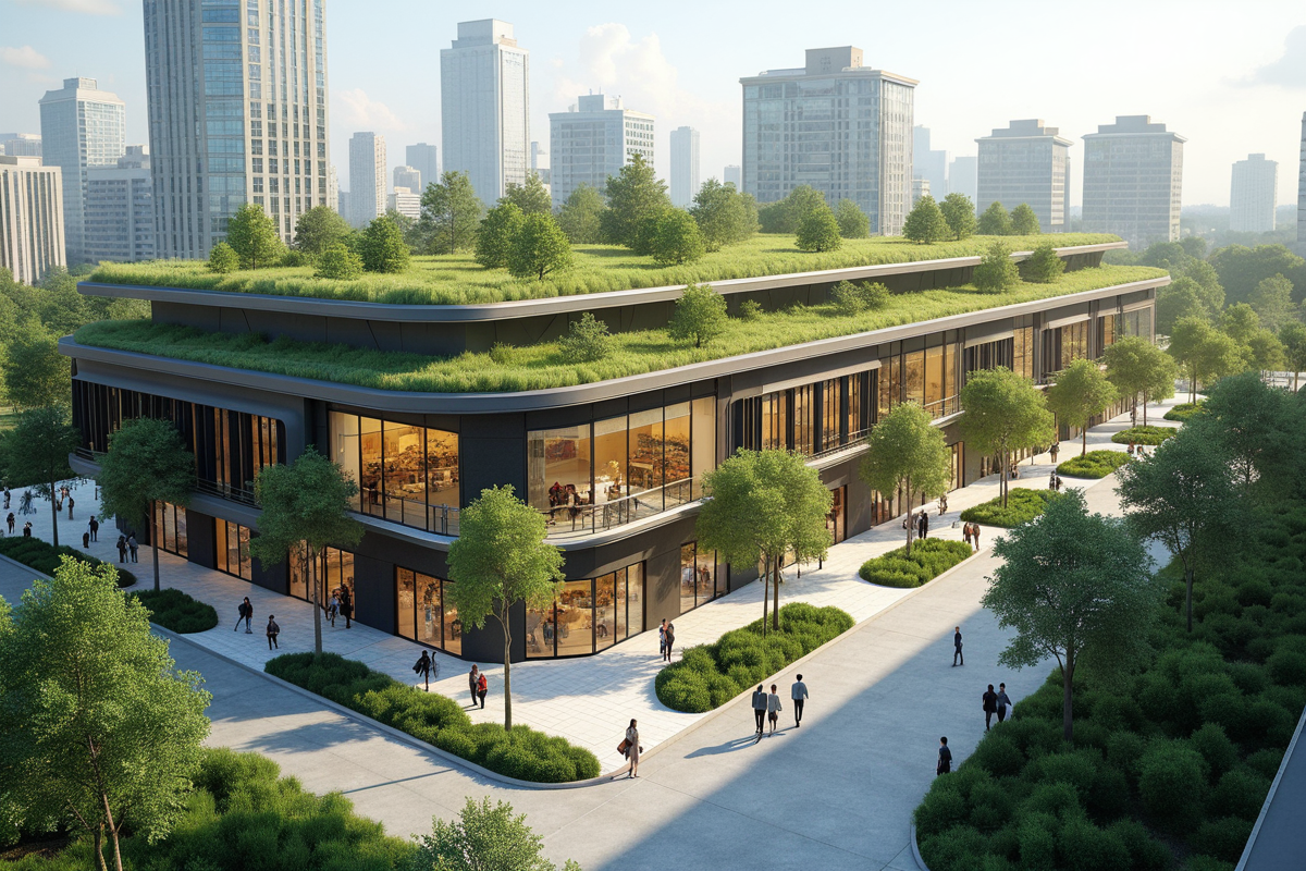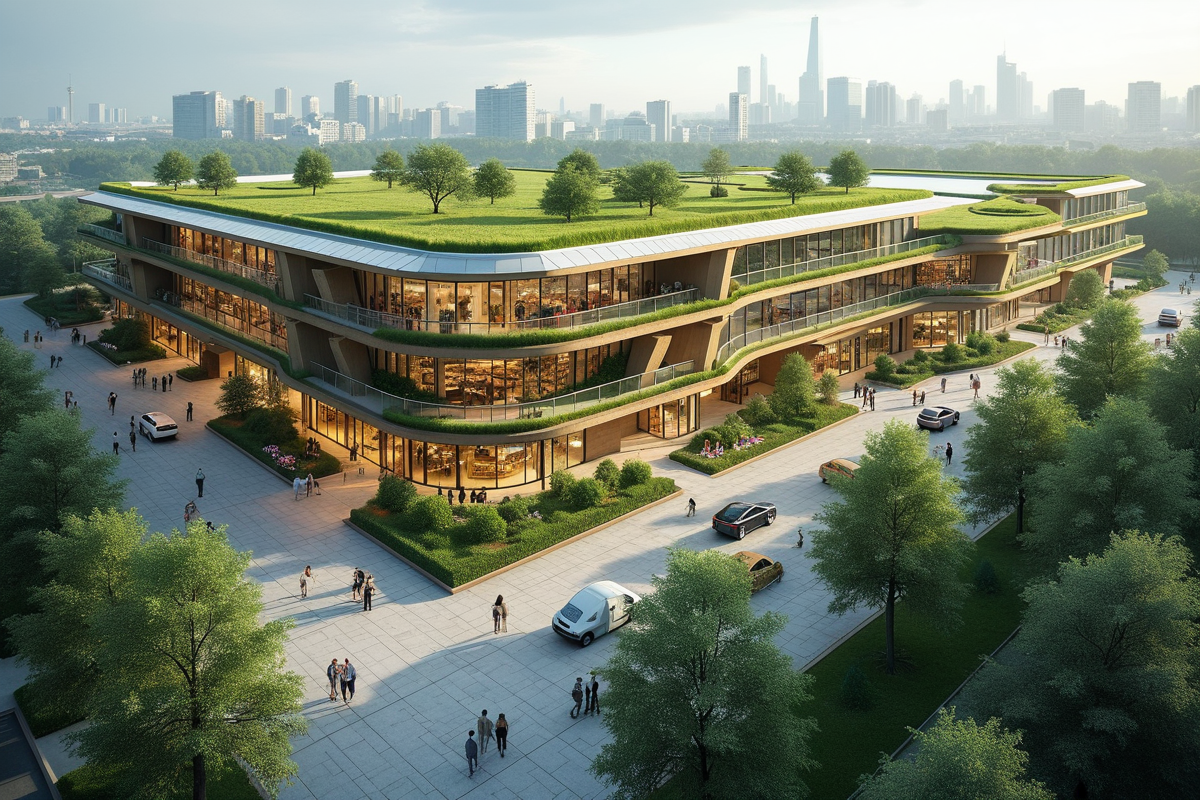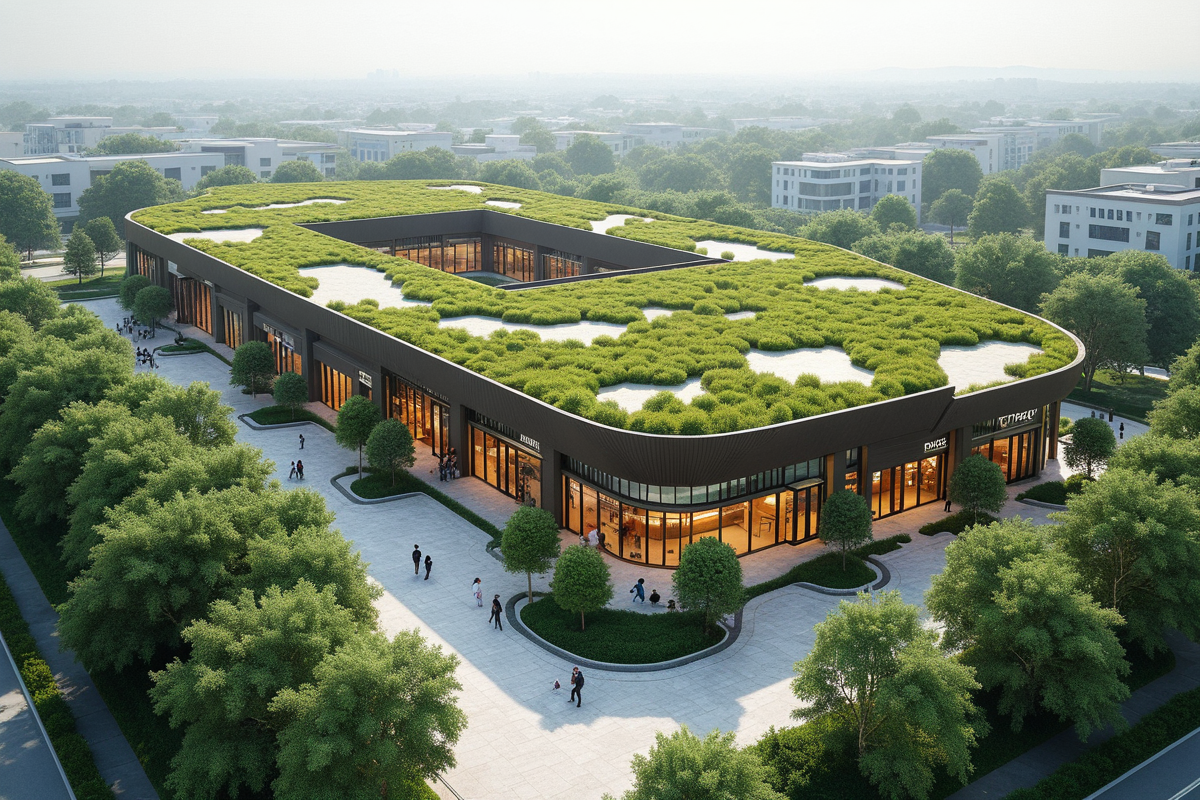 Building buildings urban environment Eco-friendly shopping mall sustainable design green roofs energy-efficient systems