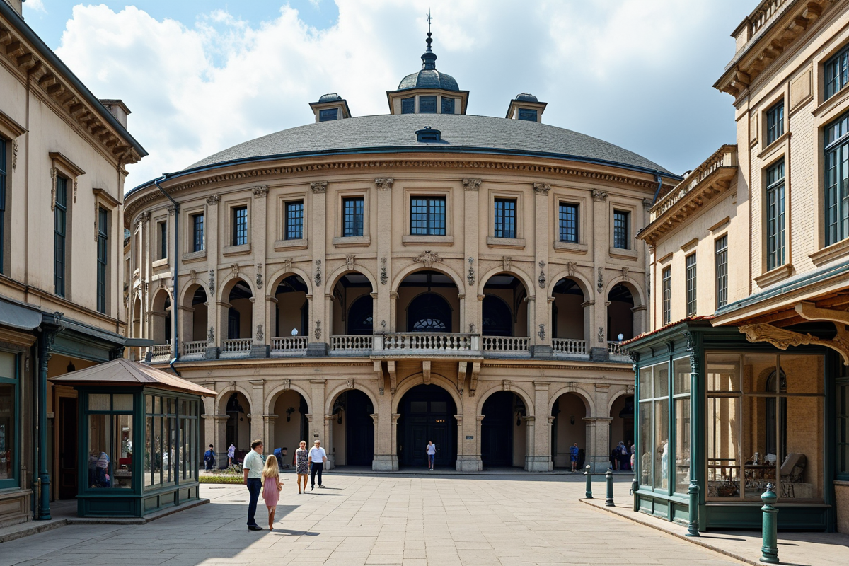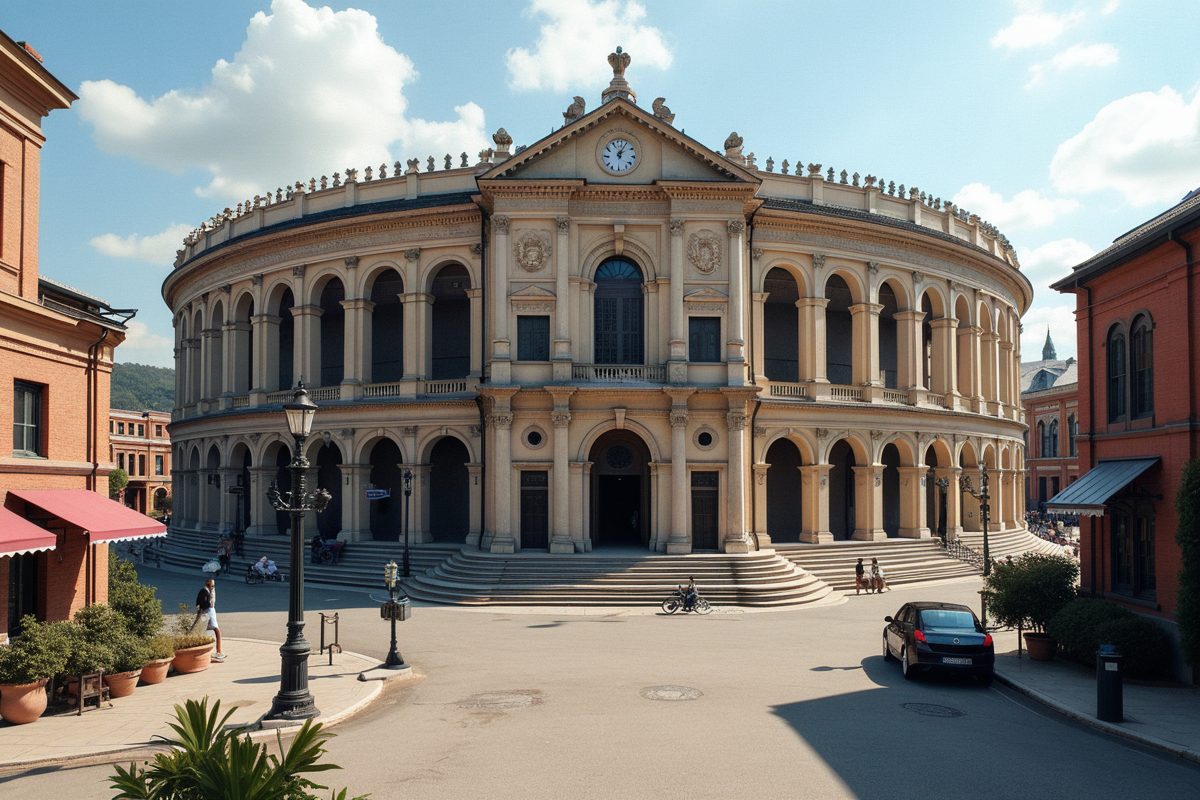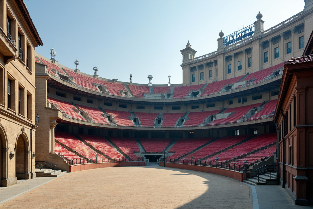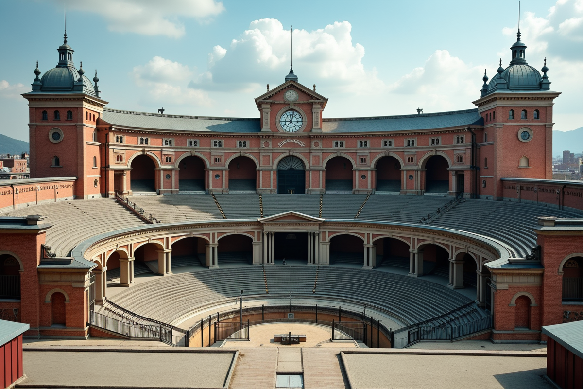 Building buildings classic architecture detailed facades Historic sports arena vintage elements traditional seating areas