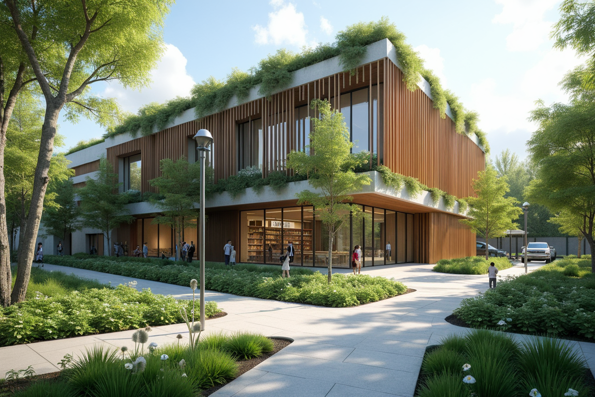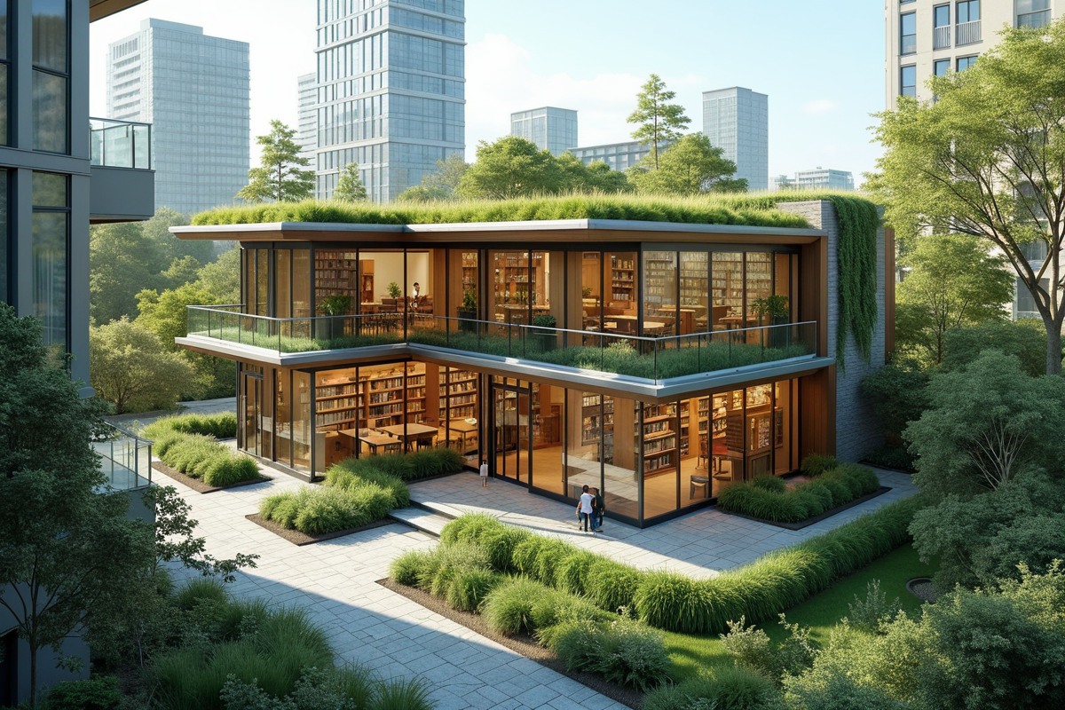 Building buildings urban environment sustainable design green roofs energy-efficient systems Eco-friendly library