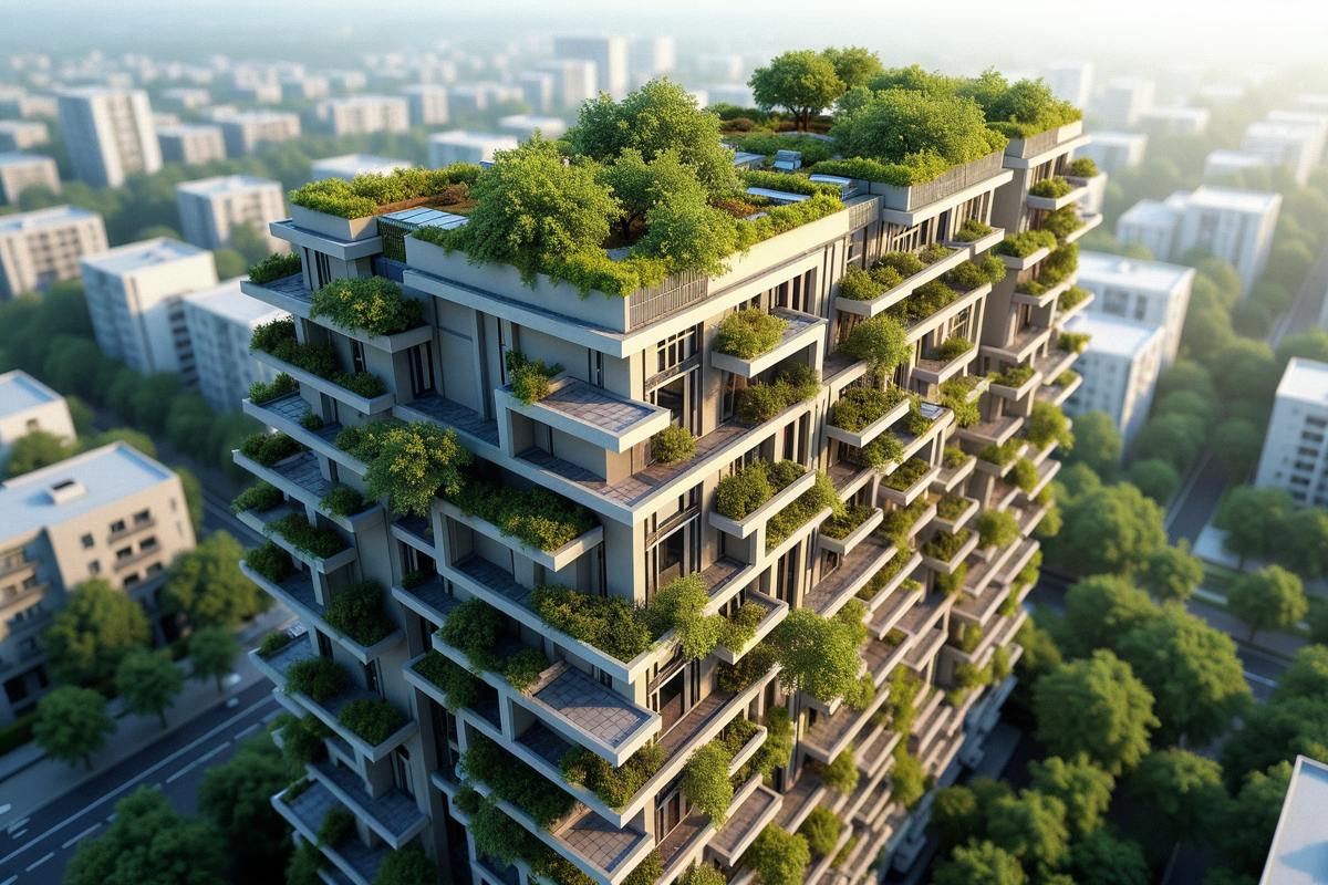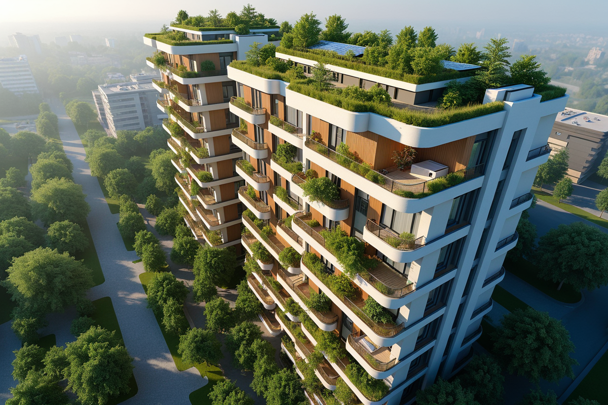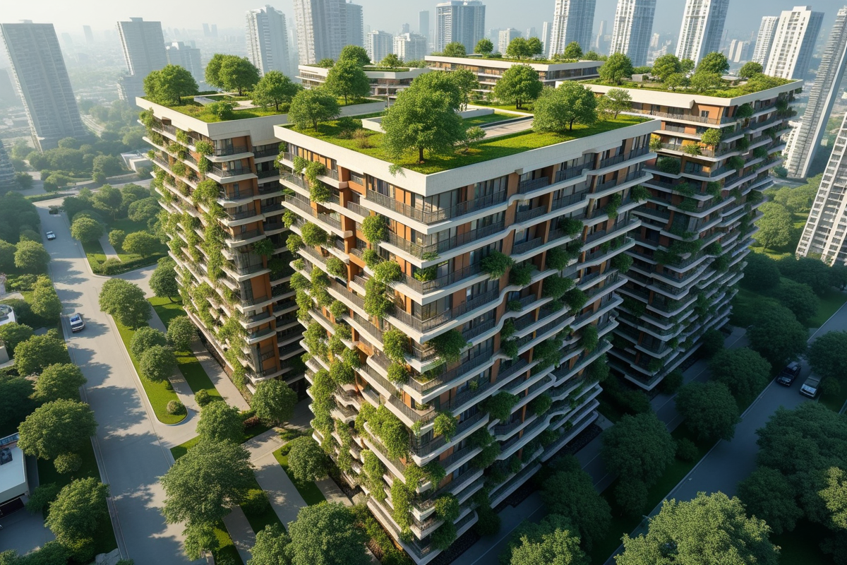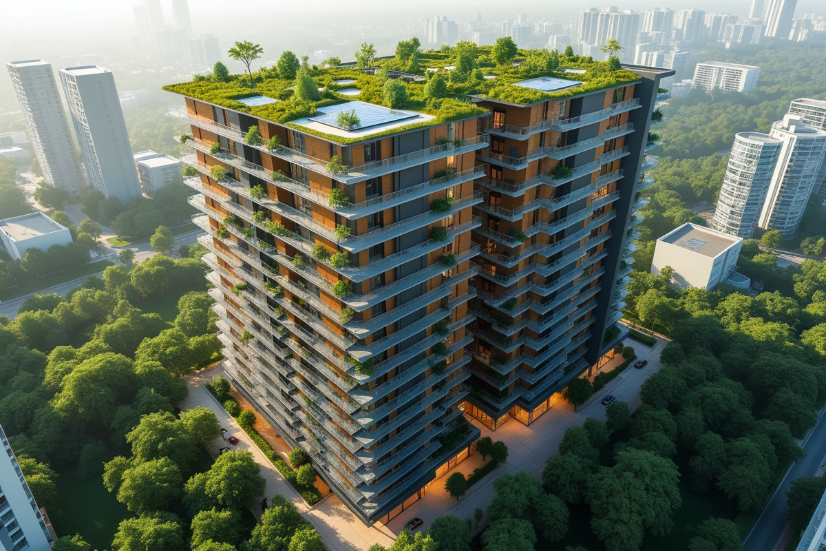 buildings sustainable design green roofs solar panels natural ventilation Eco-friendly high-rise condominium