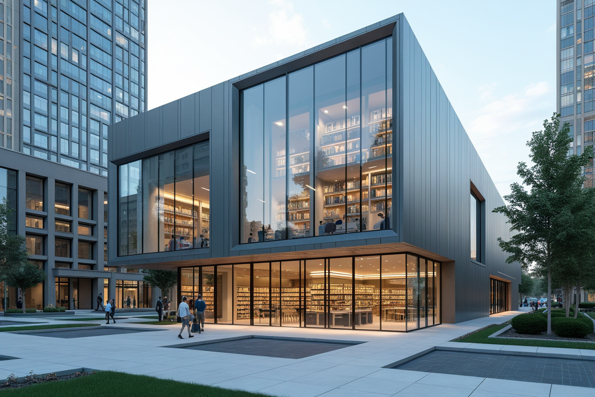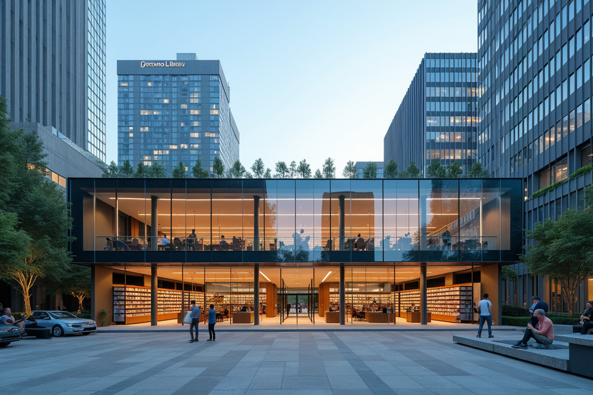 buildings urban environment high-tech features open spaces Modern library glass architecture