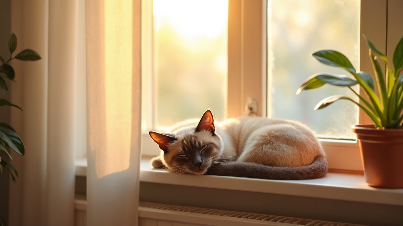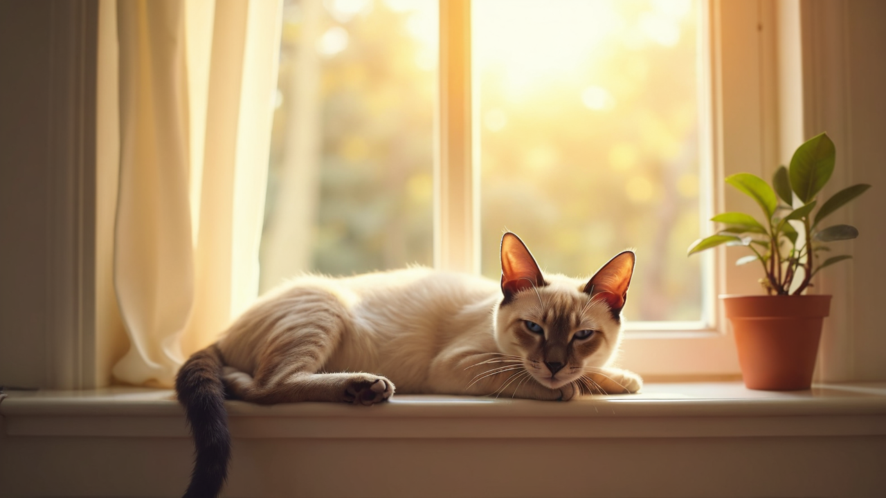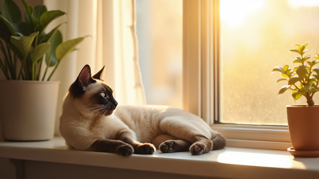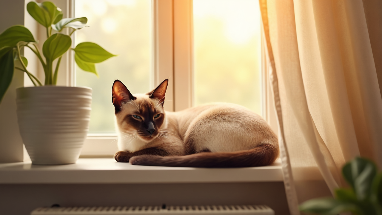 calm feline Siamese cat kitten cats modern interior afternoon sun