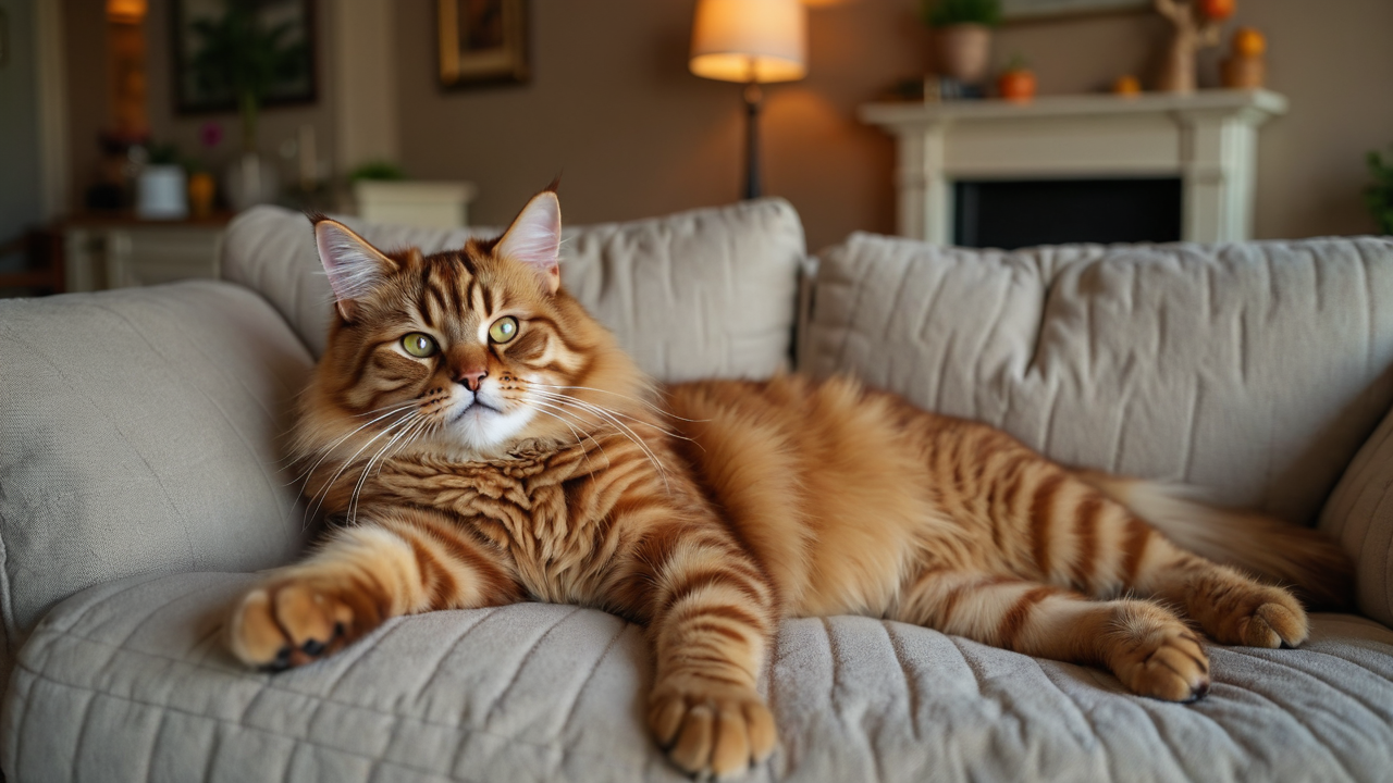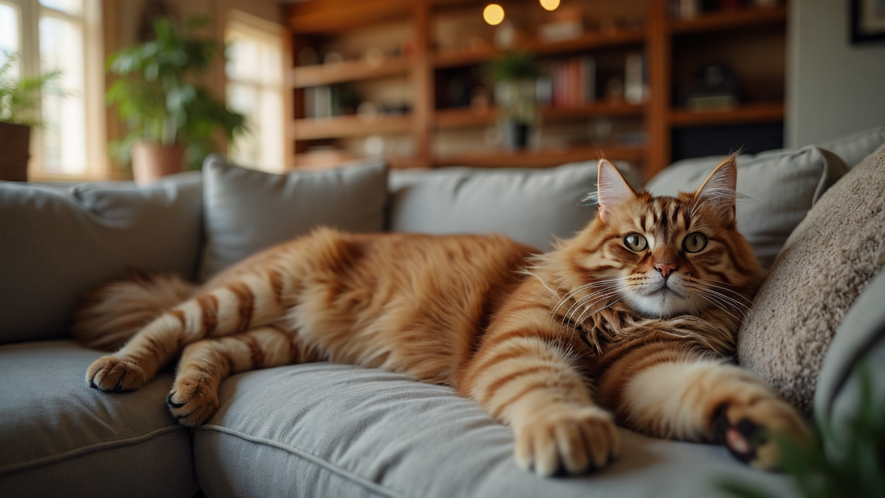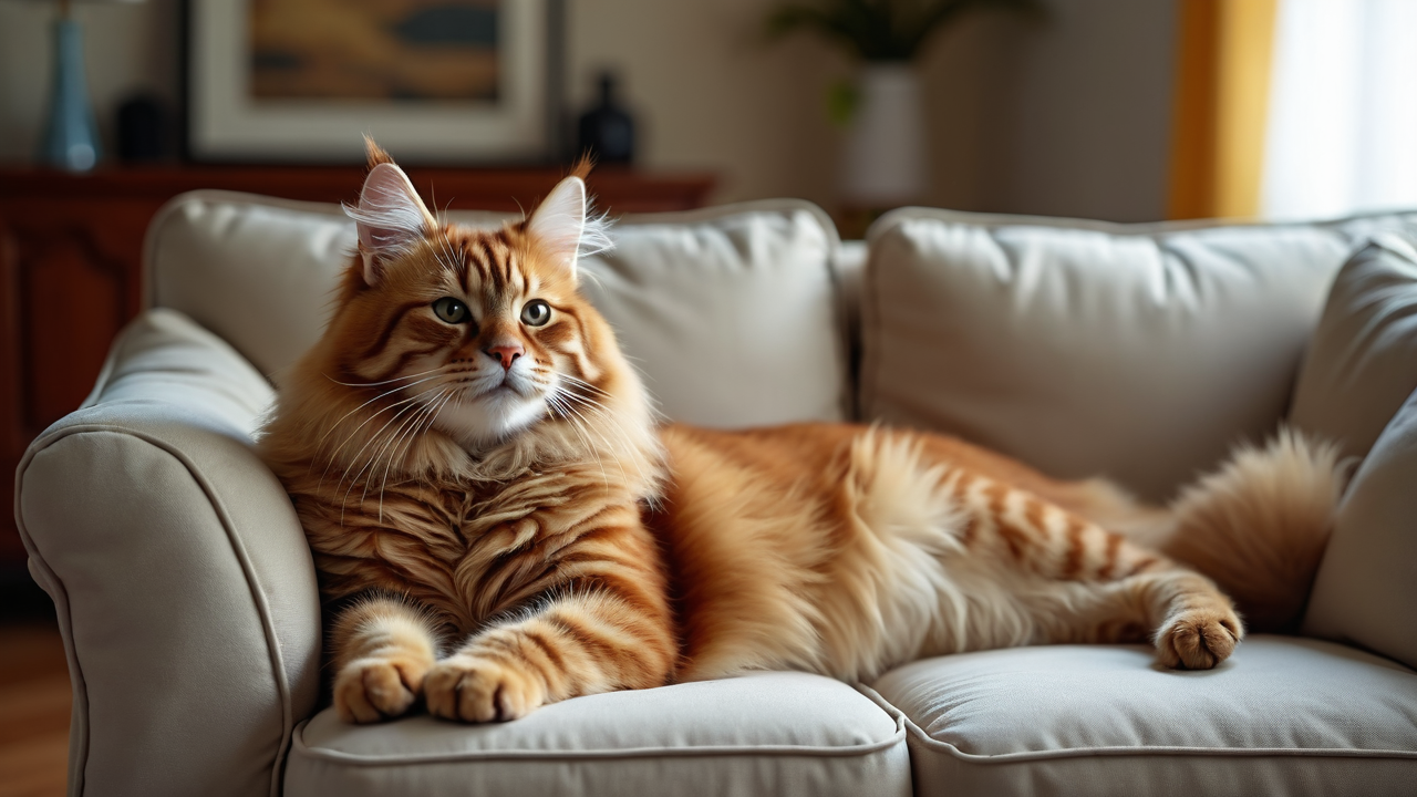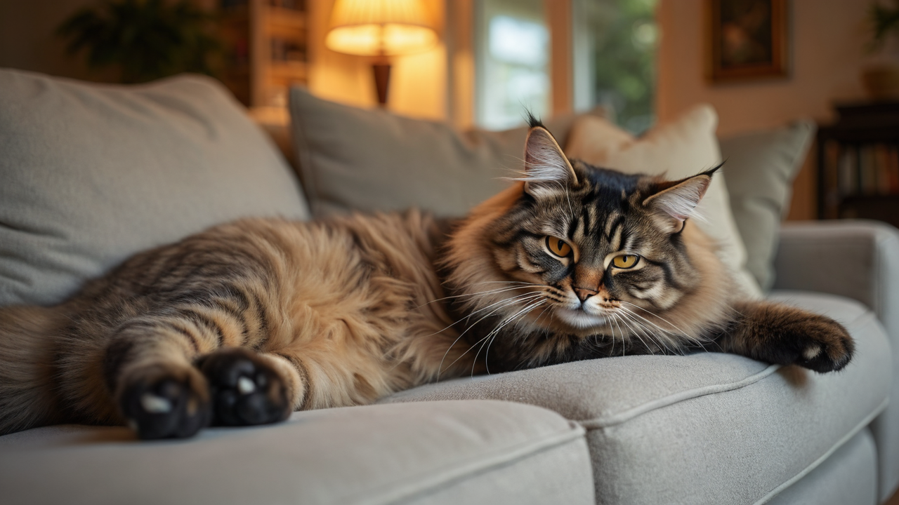 feline cat kitten cats comfort Maine Coon plush sofa cozy living room