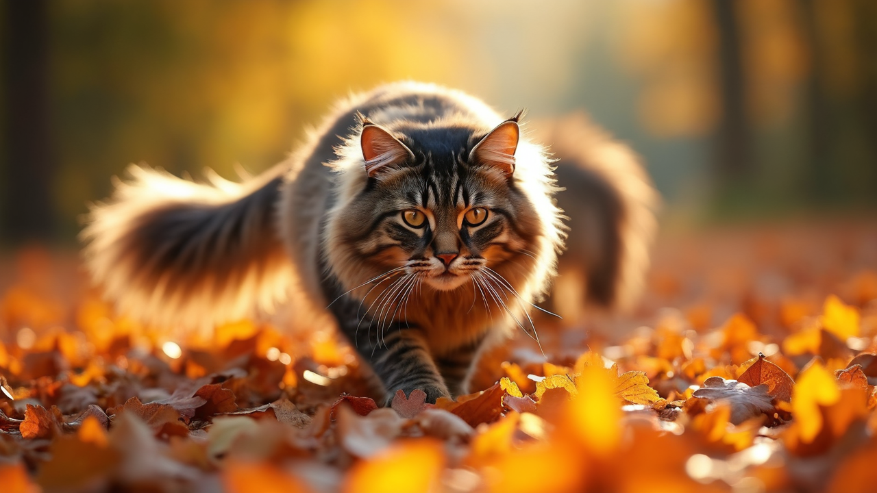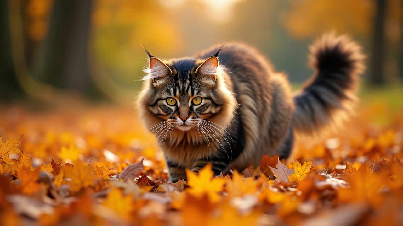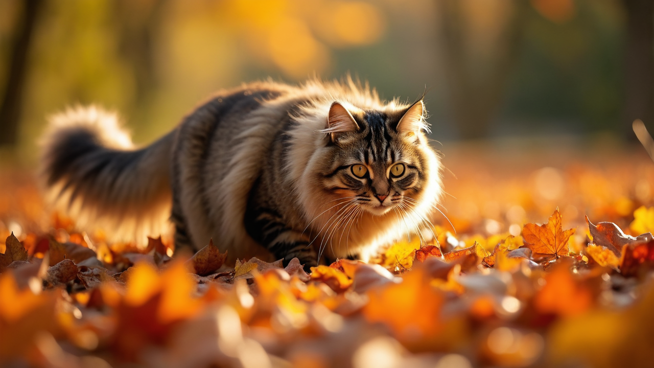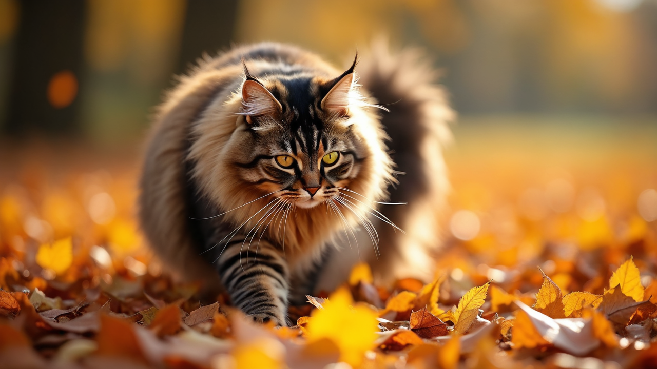 natural beauty feline cat kitten cats prowling autumn leaves Maine Coon cat