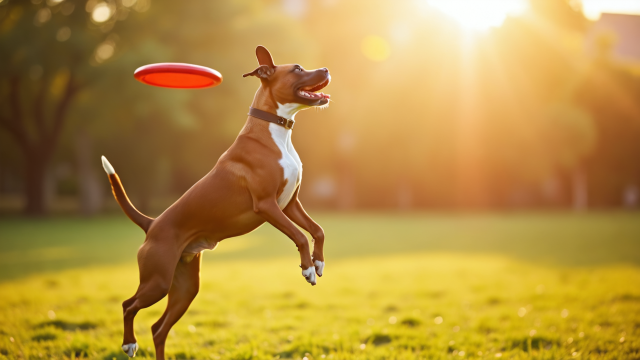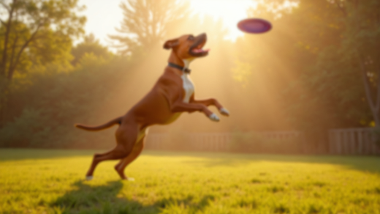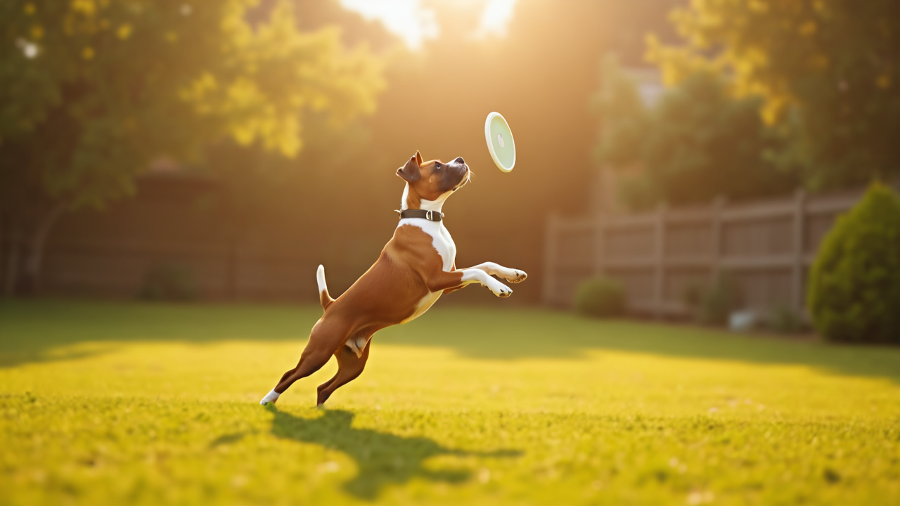 dynamic energetic golden light dog doggy dogs puppy catching frisbee early morning Boxer spacious yard