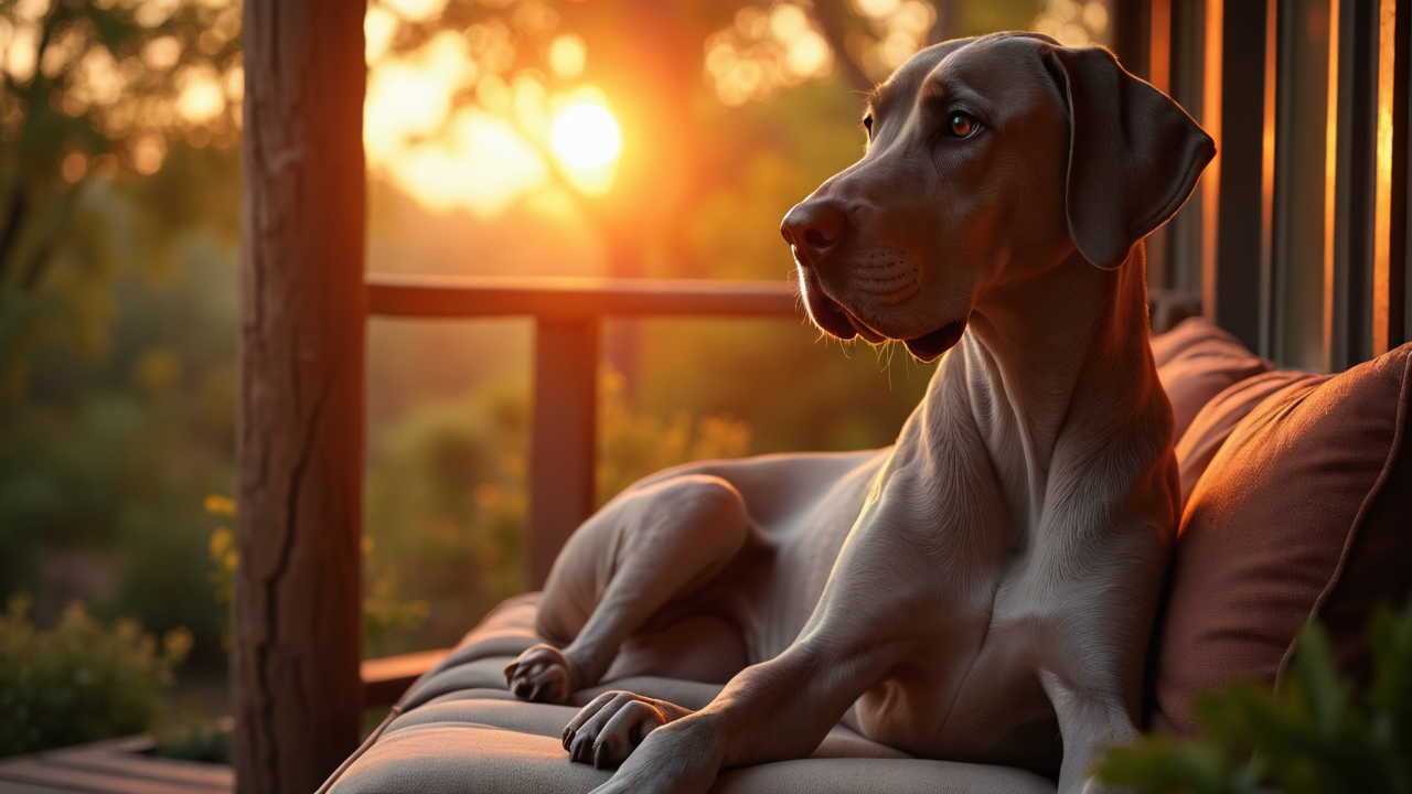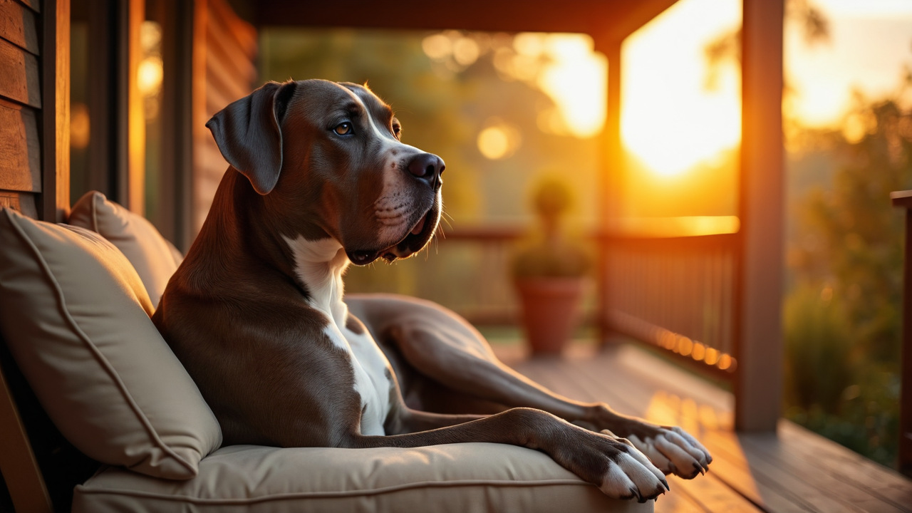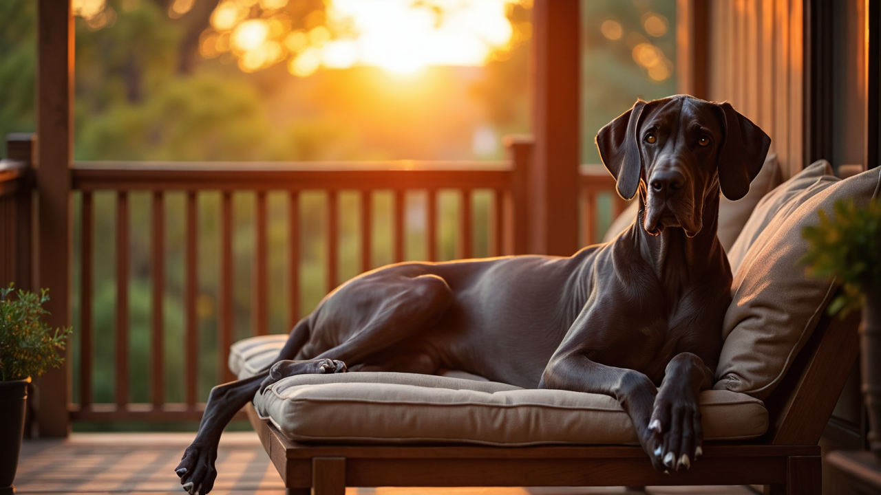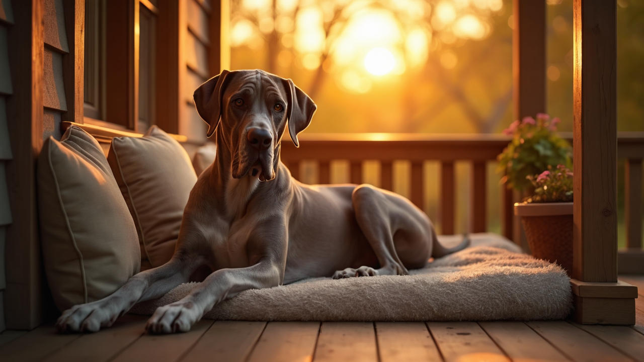 cozy tranquil late afternoon dog doggy dogs puppy lounging golden glow Great Dane cozy porch cushioned seat
