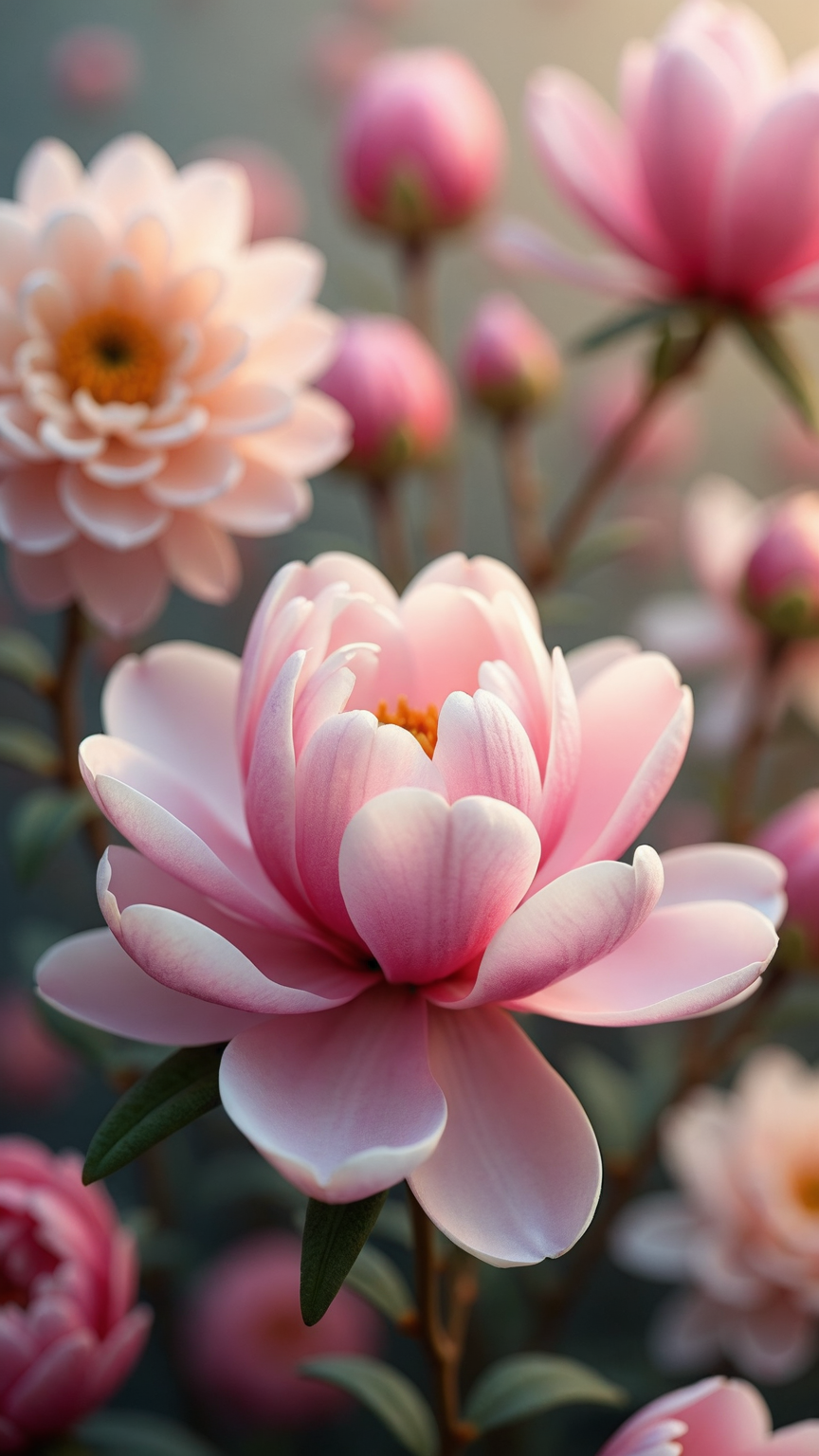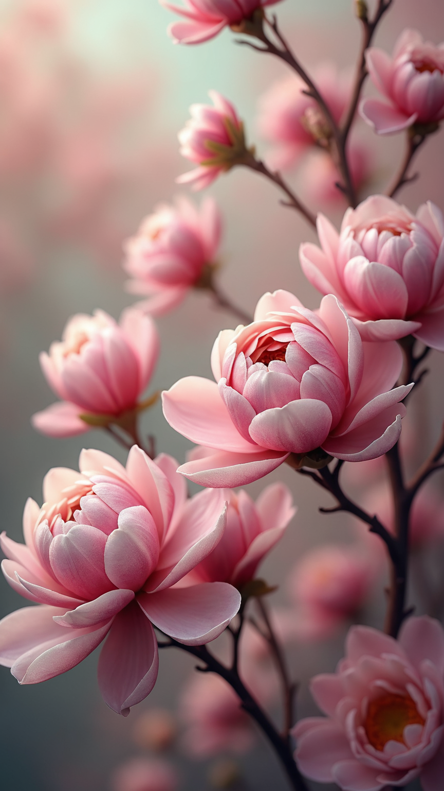 mobile wallpaper Floral flower petals petal intricate background magnolias and peonies bokeh effect