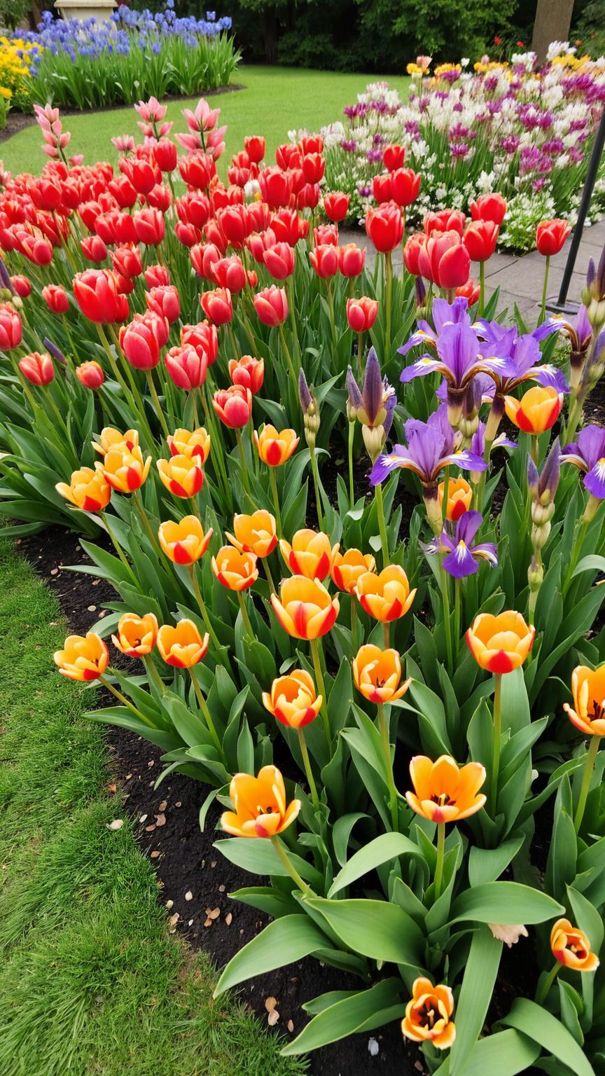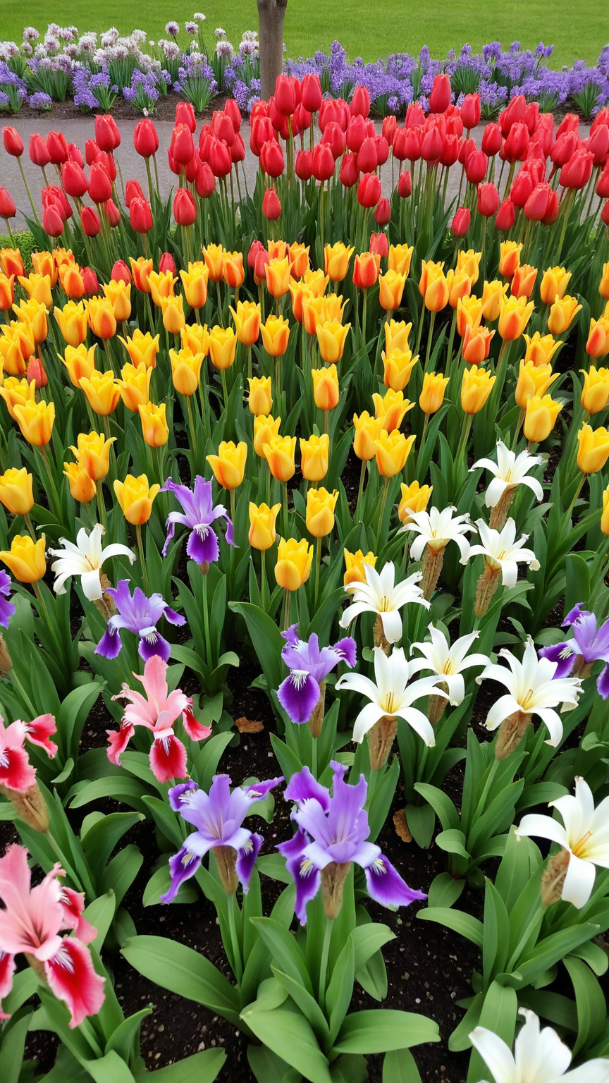 mobile wallpaper Floral colorful garden flower petals petal tulips and lilies well-maintained beds