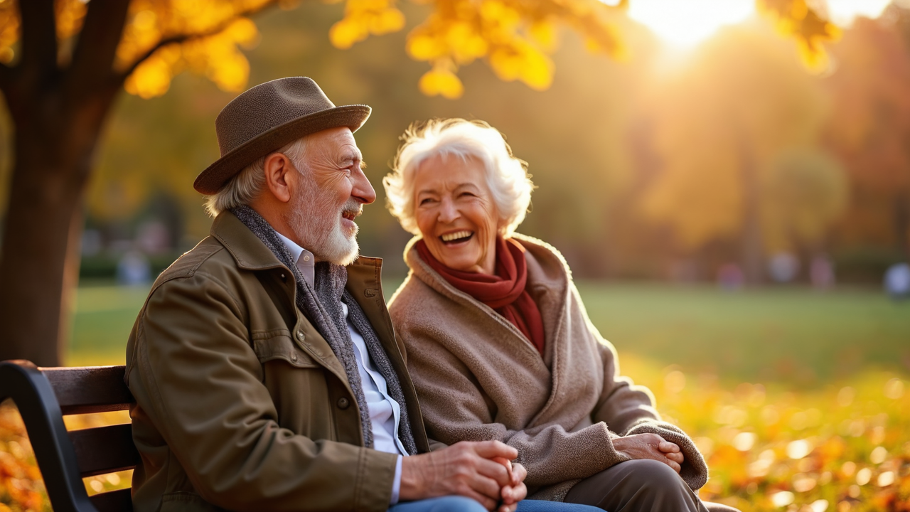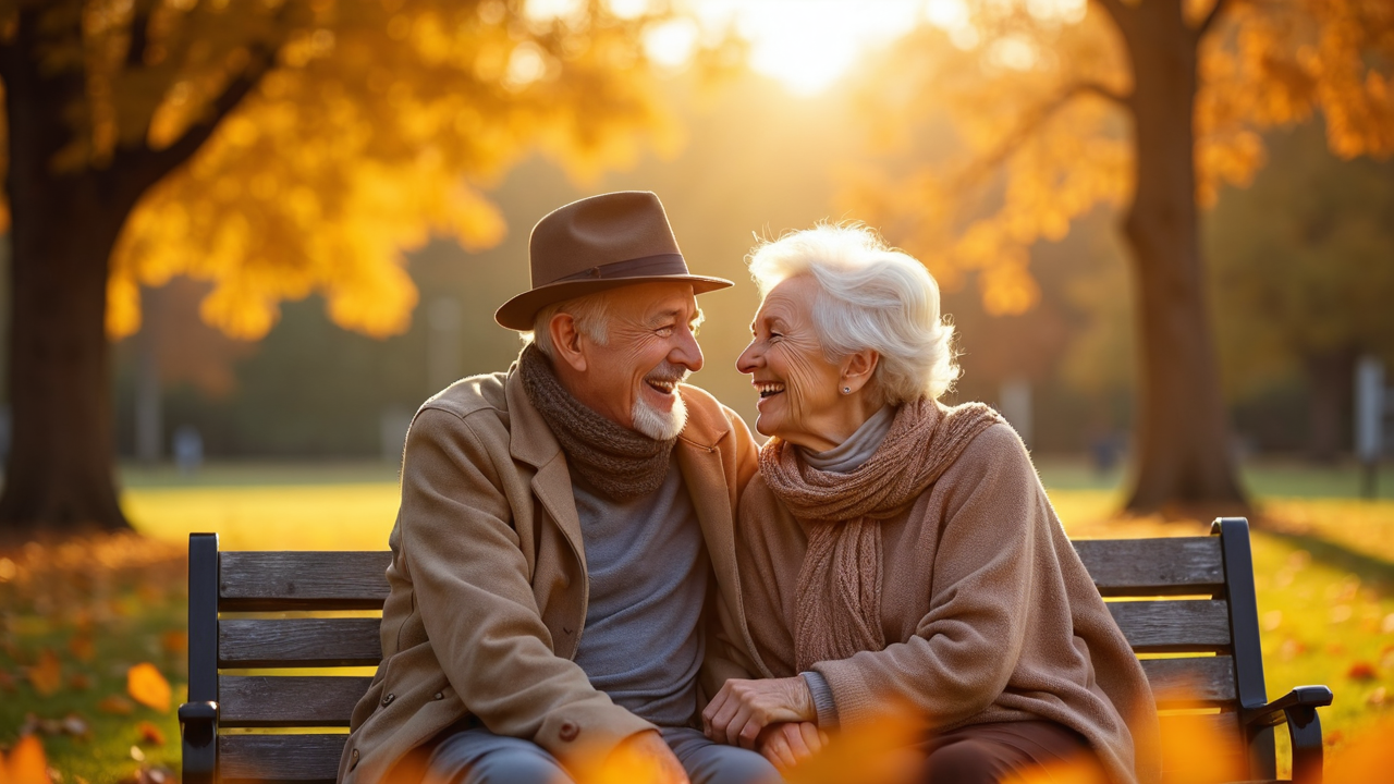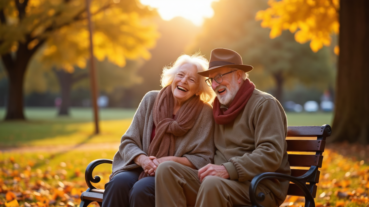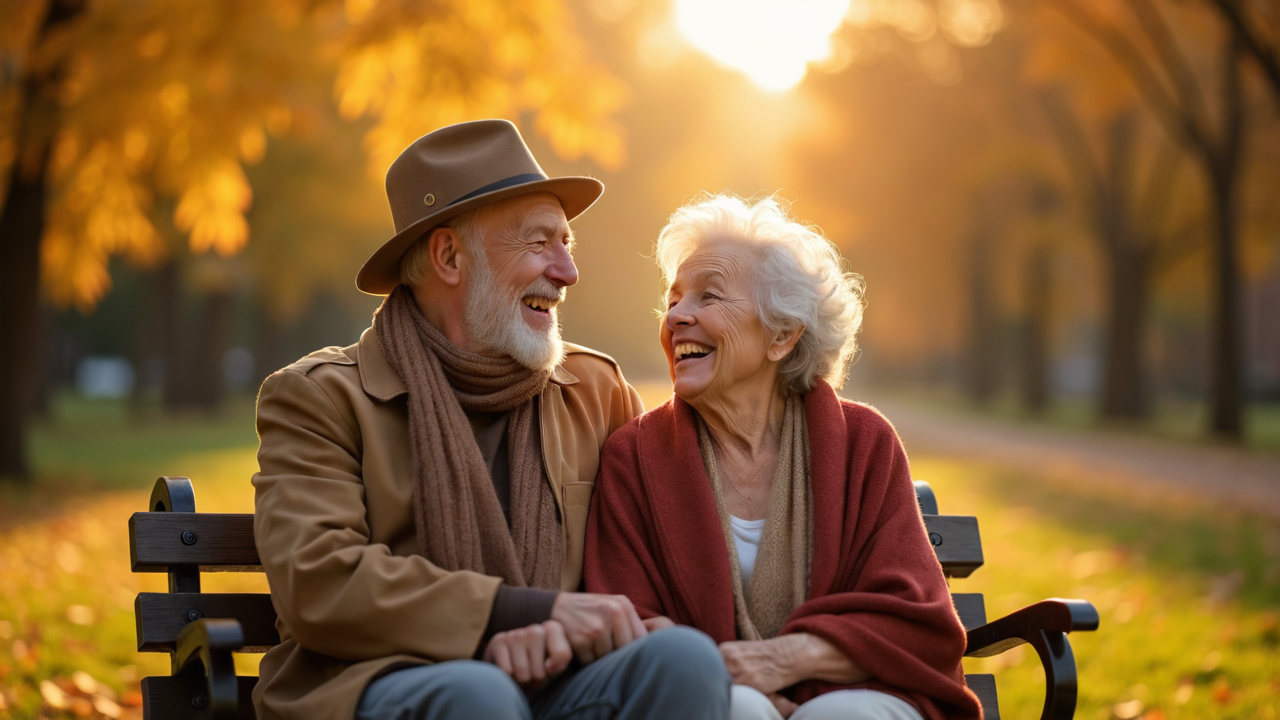 Golden Sunlight family moments Elderly friends autumn park laughing together warm expressions