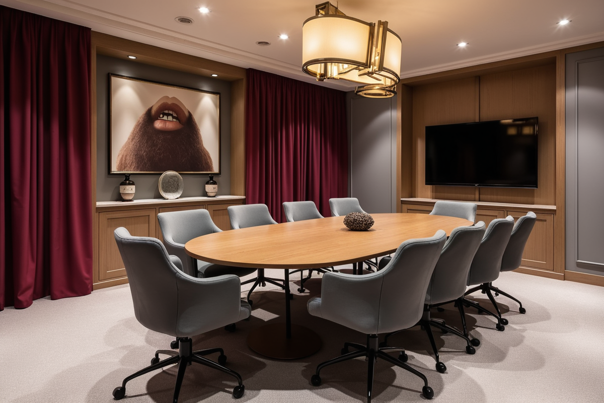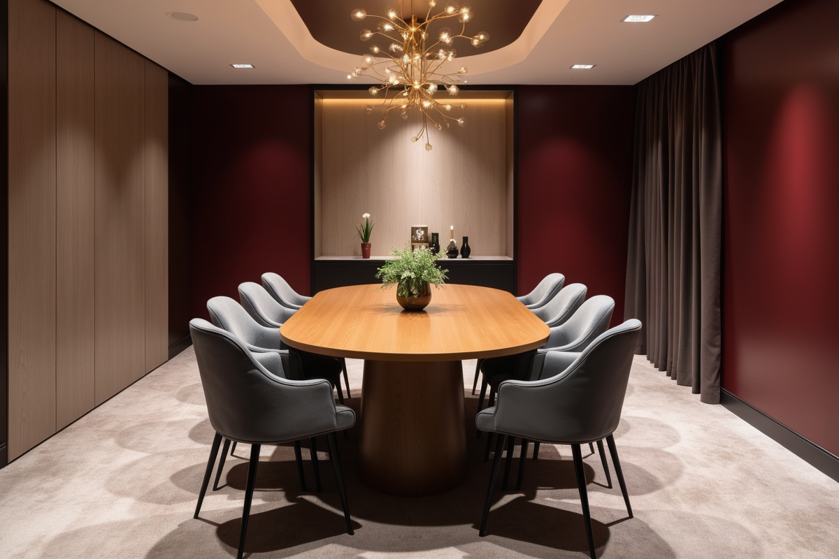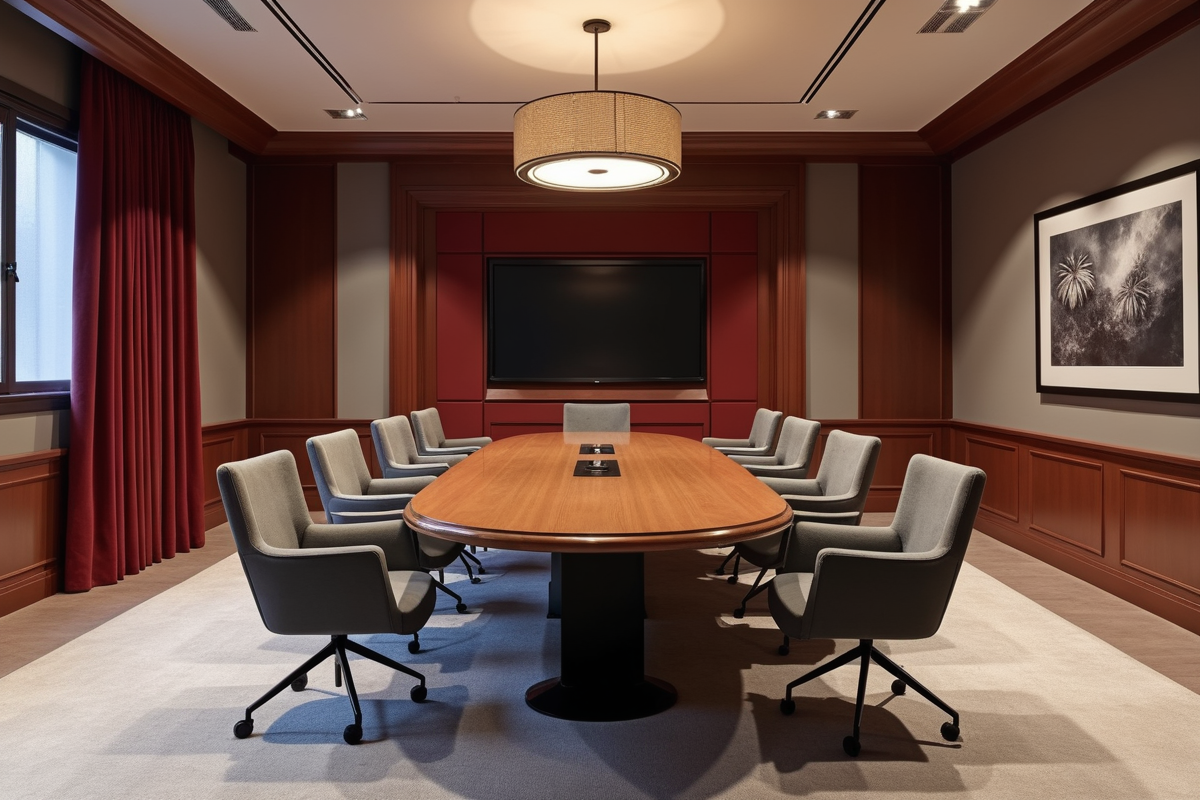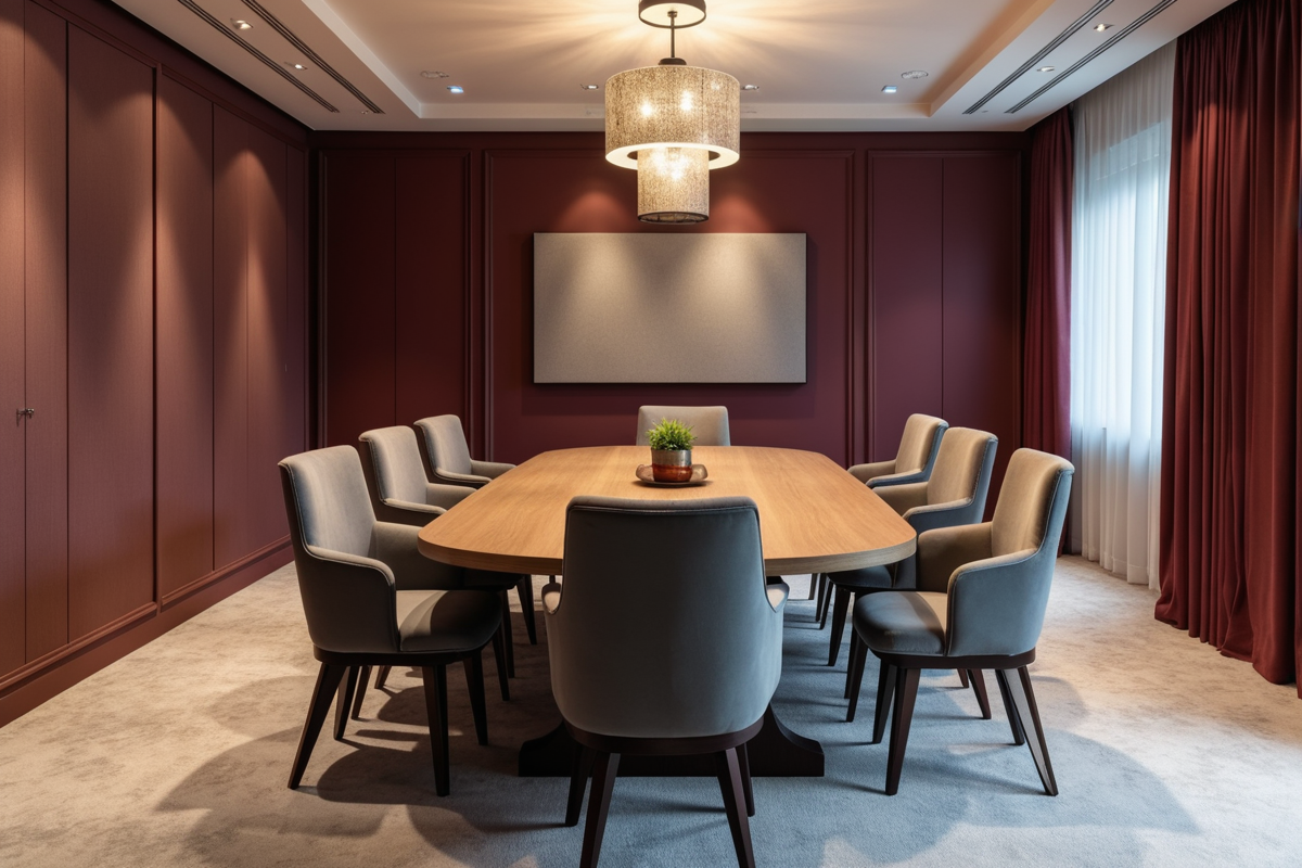warm lighting meeting room office meeting room office interior velvet chairs oval table slate gray