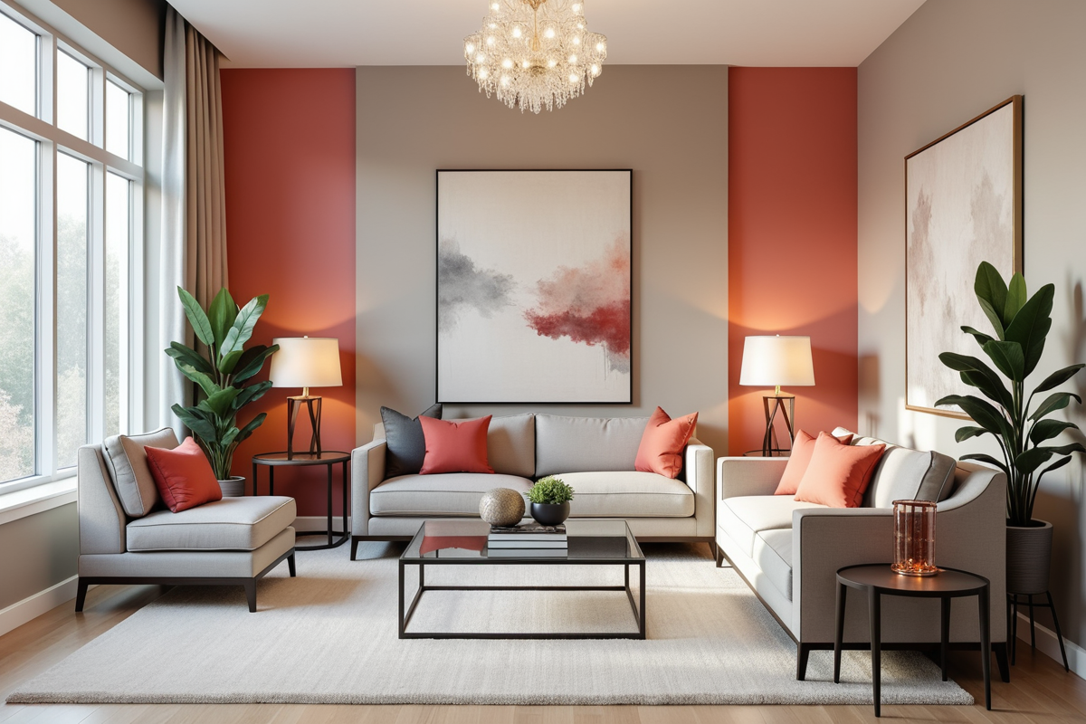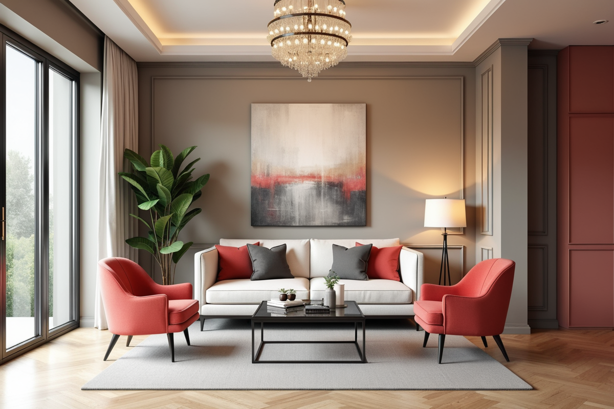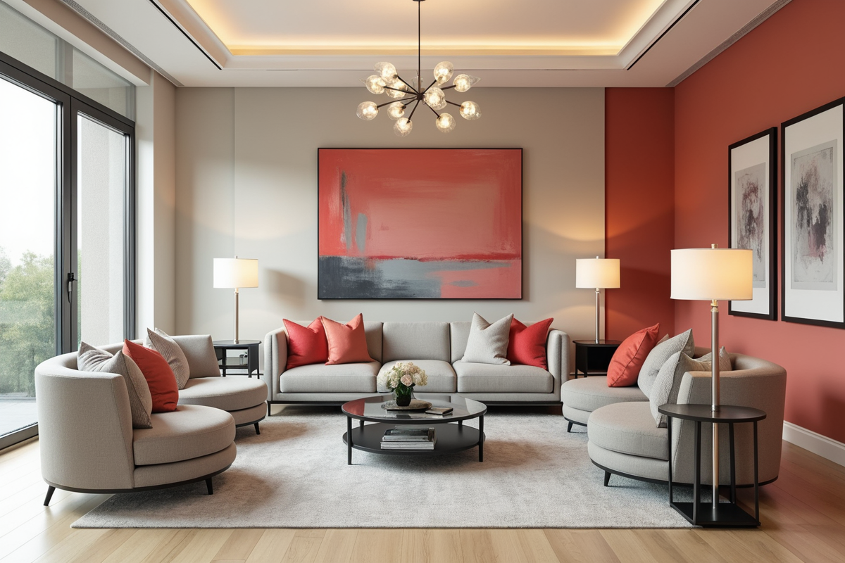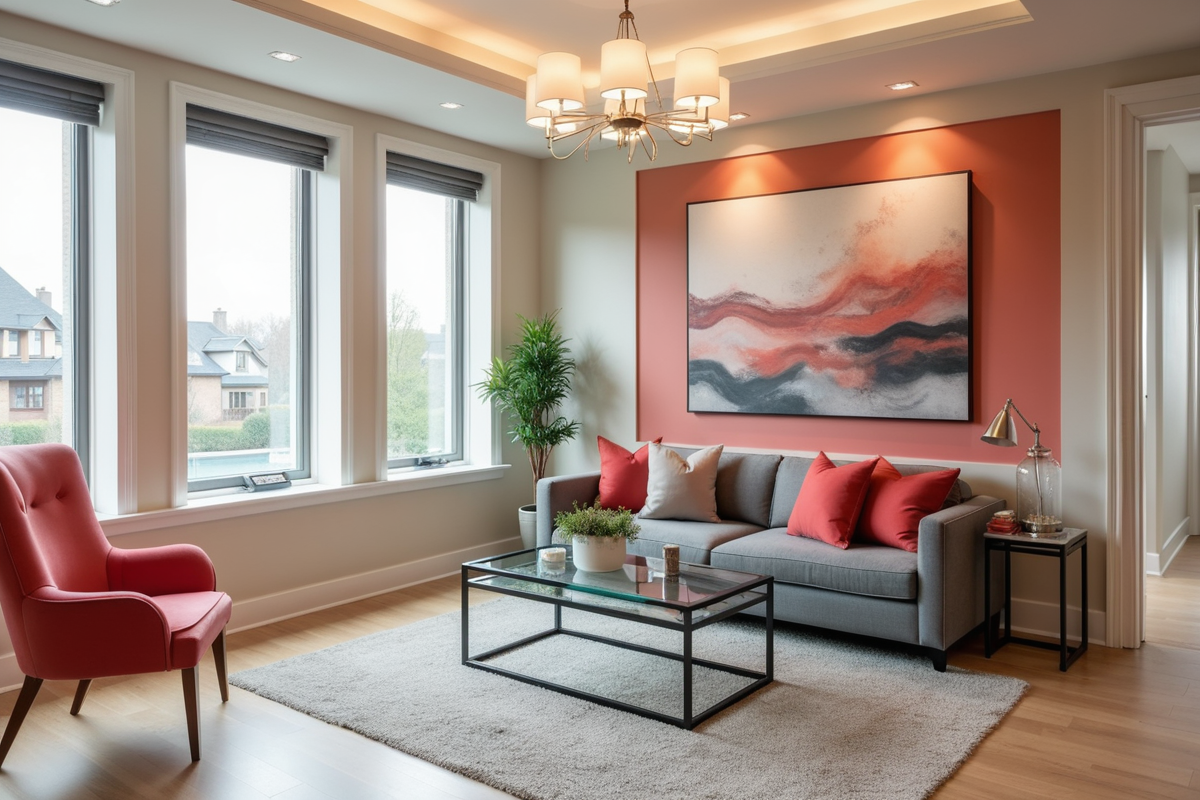 Abstract Painting office interior glass table coral accents Visitor room Contemporary classic visitor room