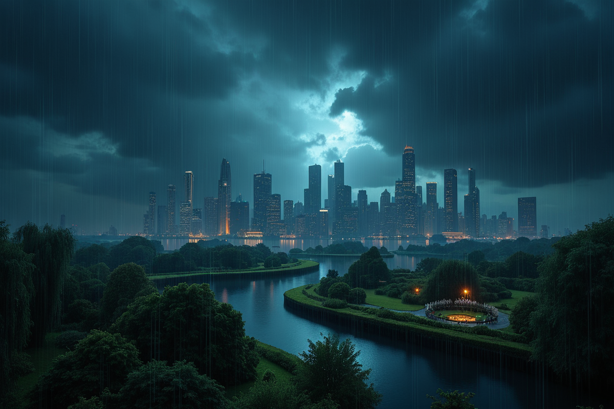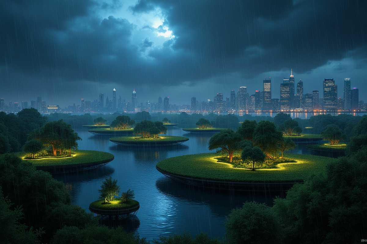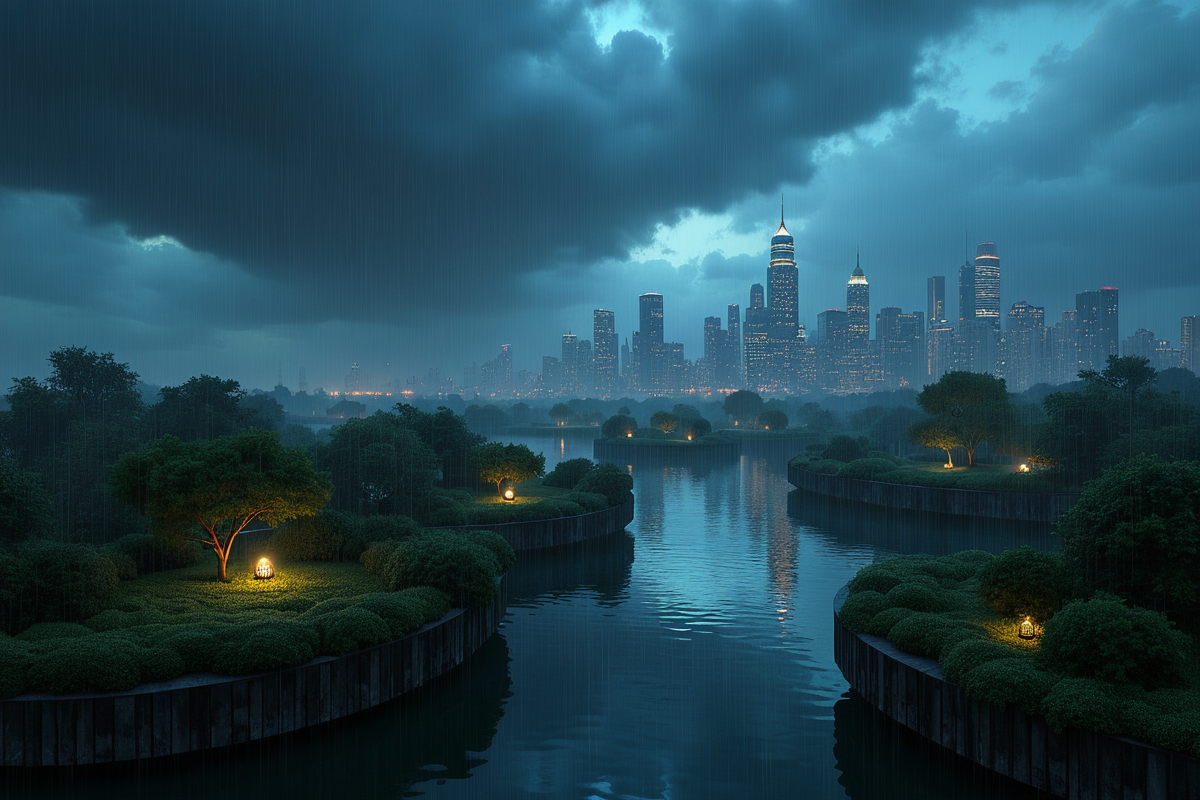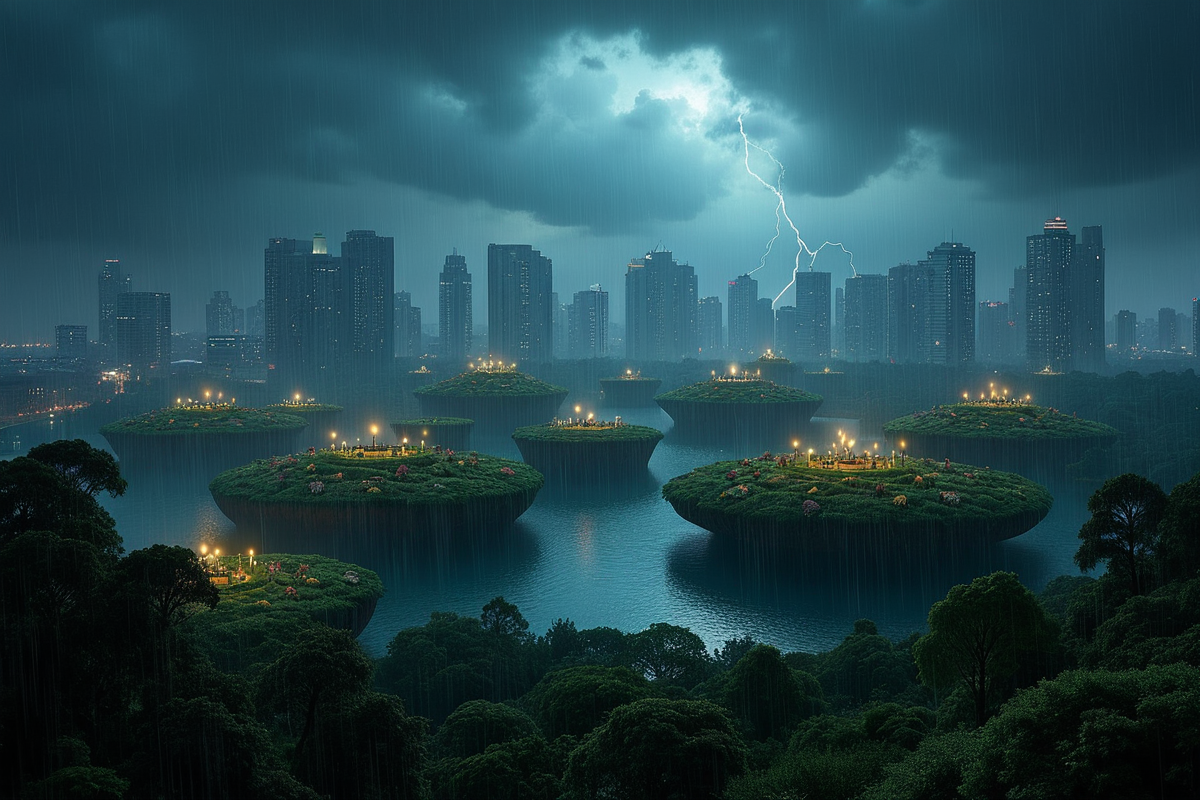 dark clouds Dramatic lighting dramatic skyline stormy night rain floating gardens floating platforms