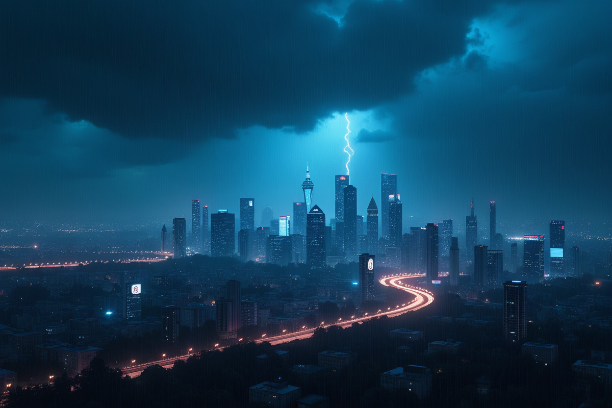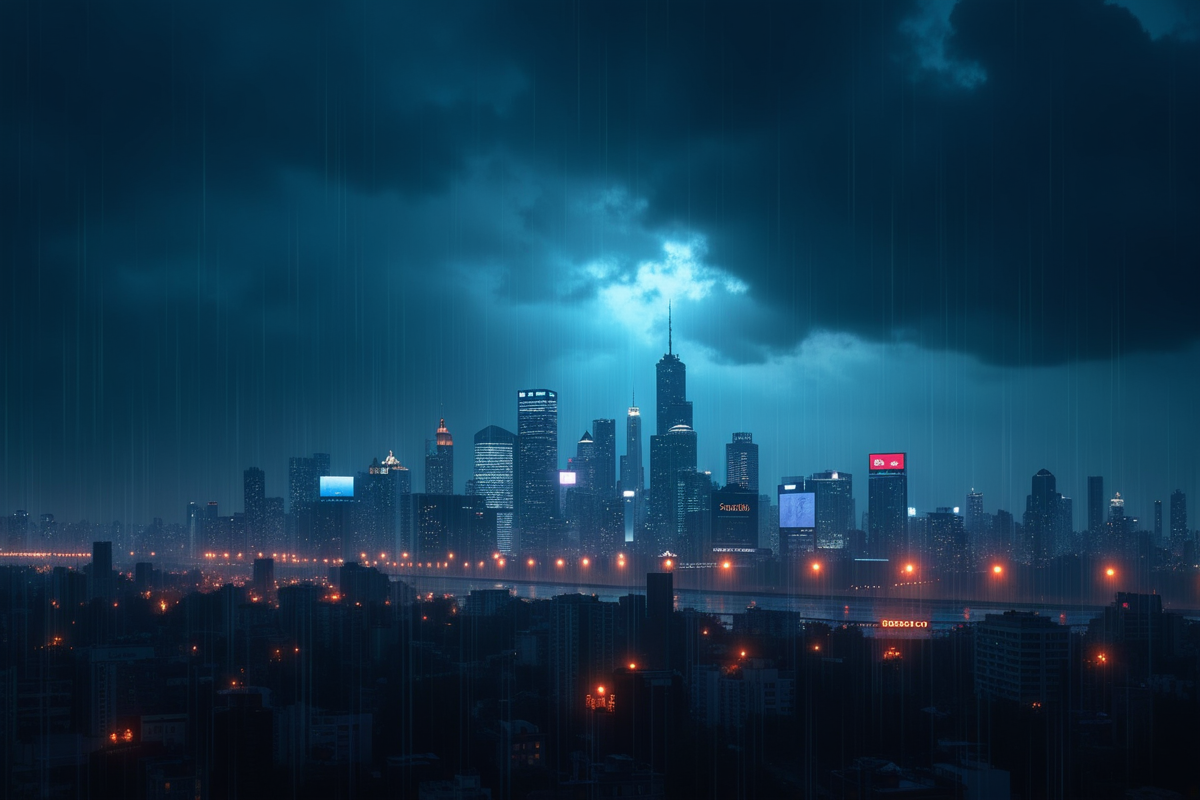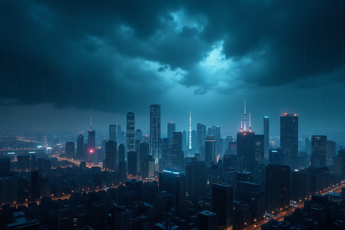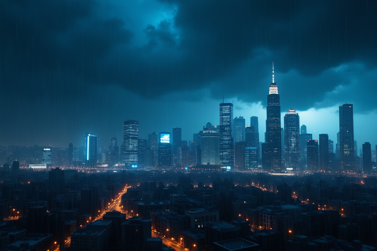 dark clouds Dramatic lighting dramatic skyline stormy night rain smart city infrastructure advanced technologies