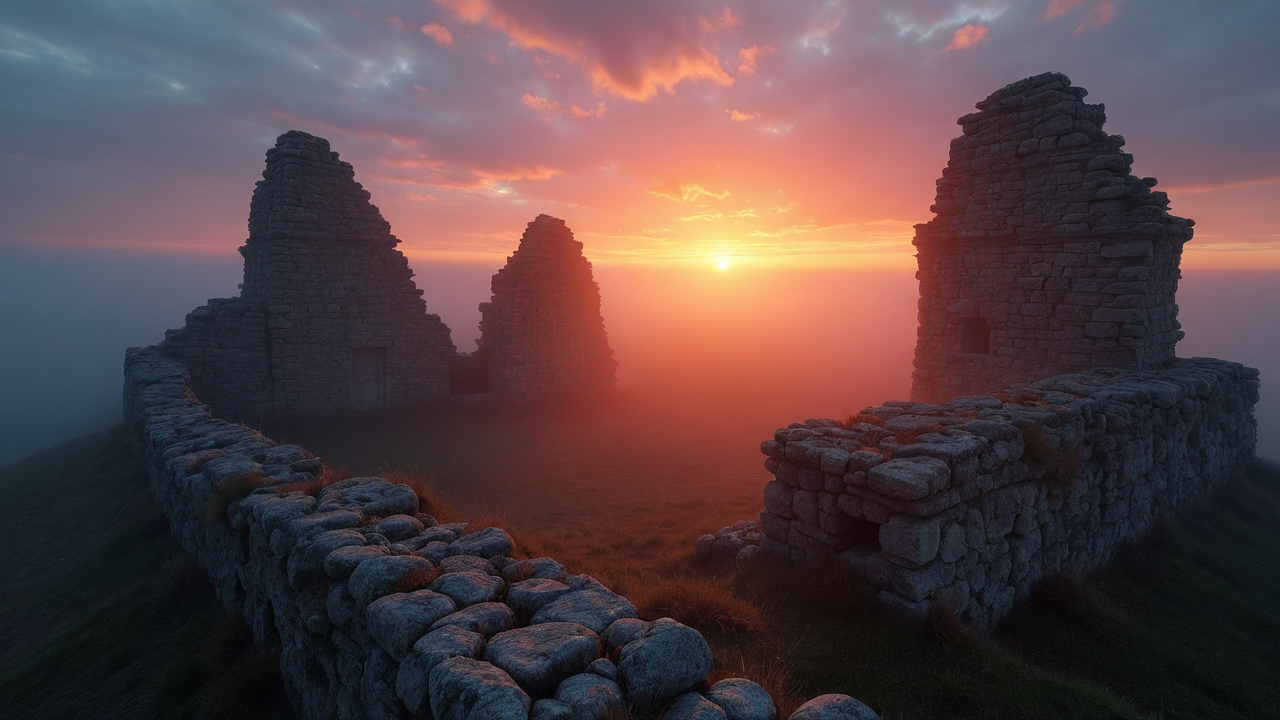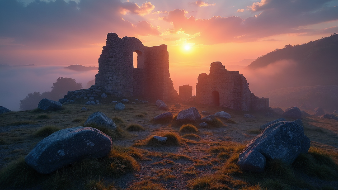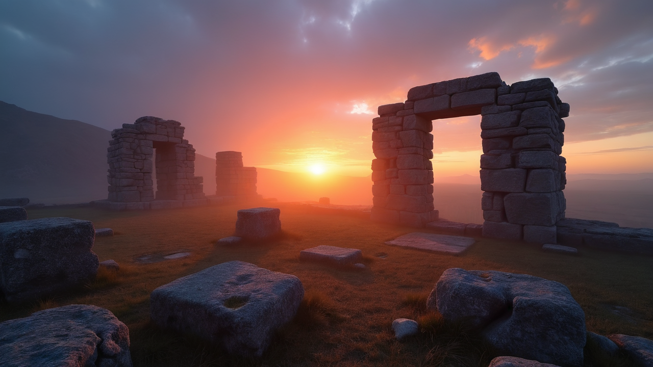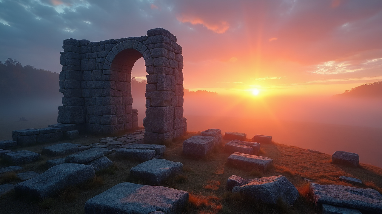 sunrise golden light sunrises weathered stones serene dawn Sunrise ancient ruins mystical scene