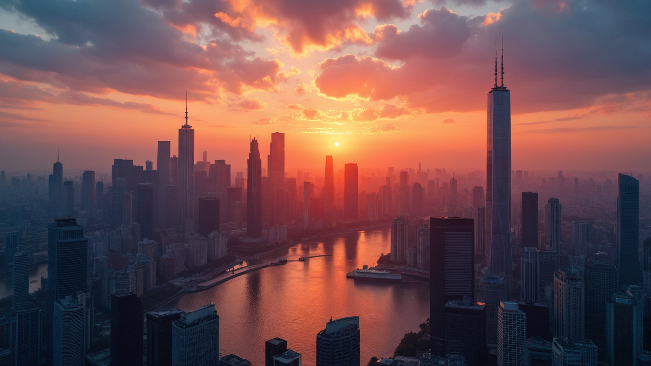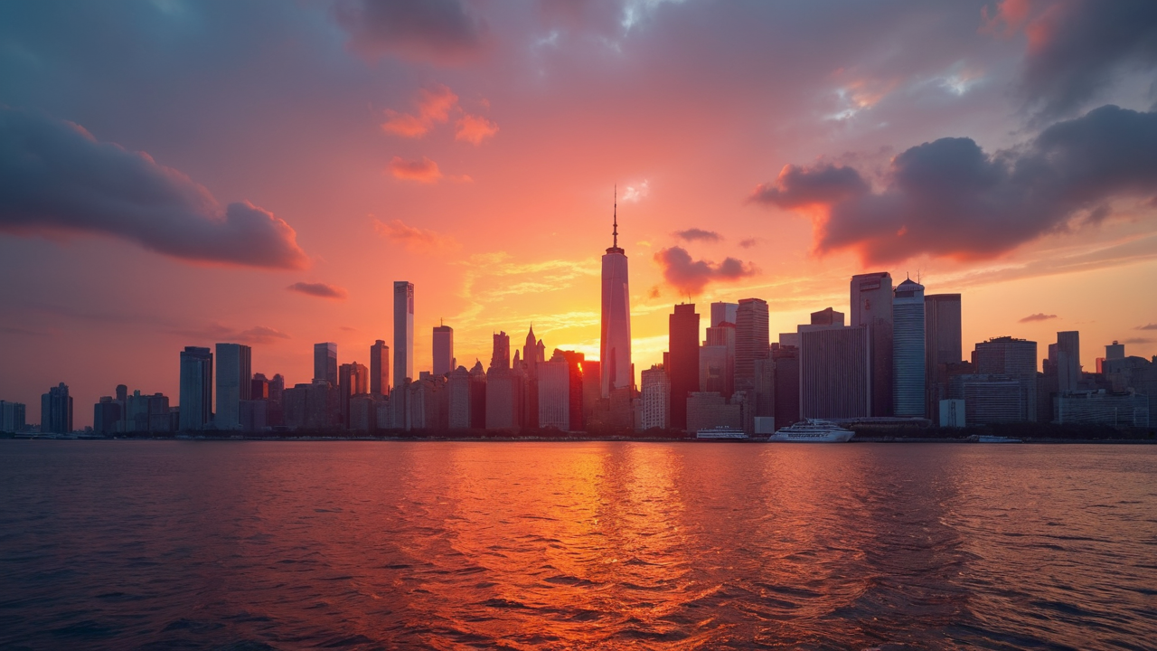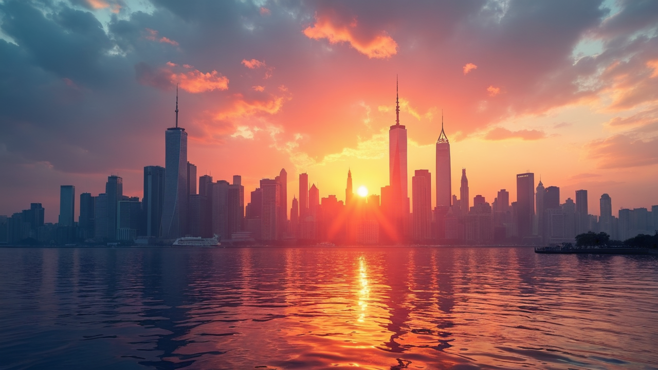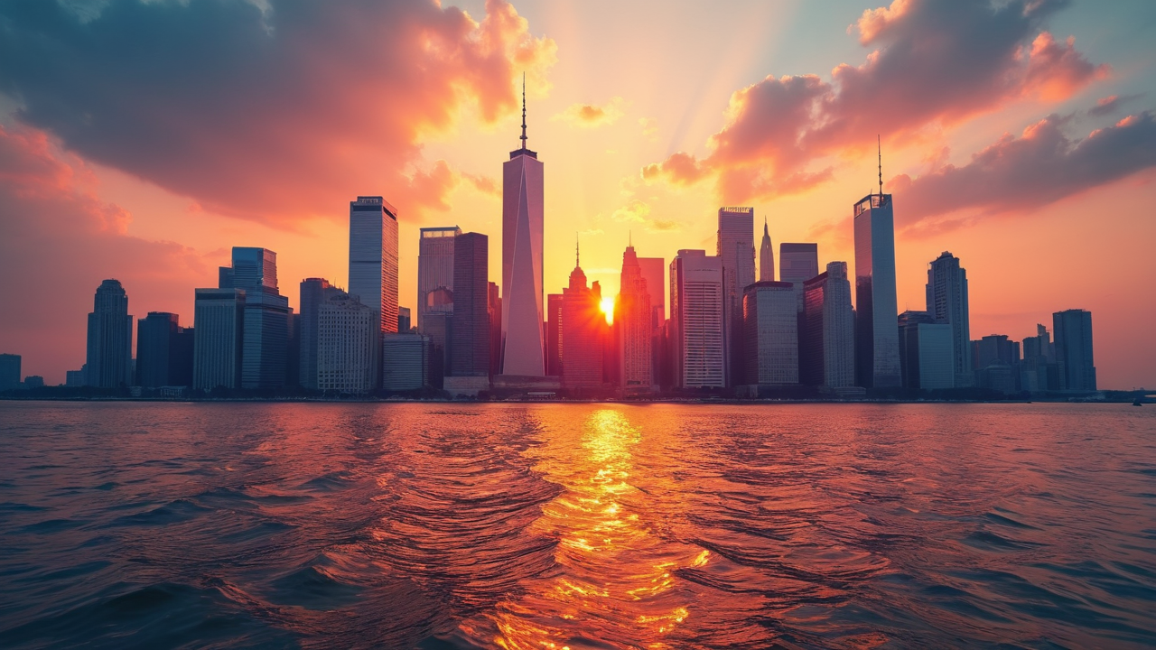 sunset city skyline skyscrapers sunsets Urban Scene Colorful Reflections